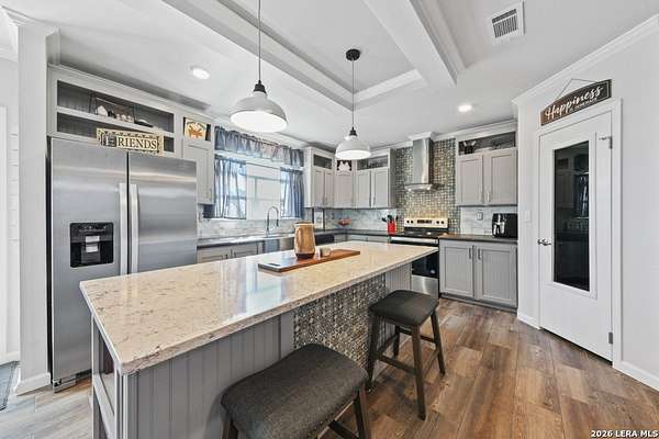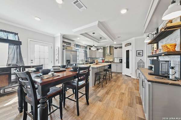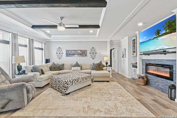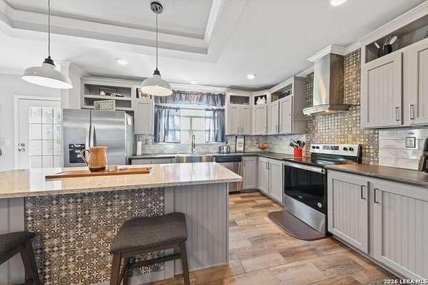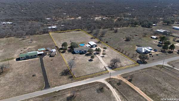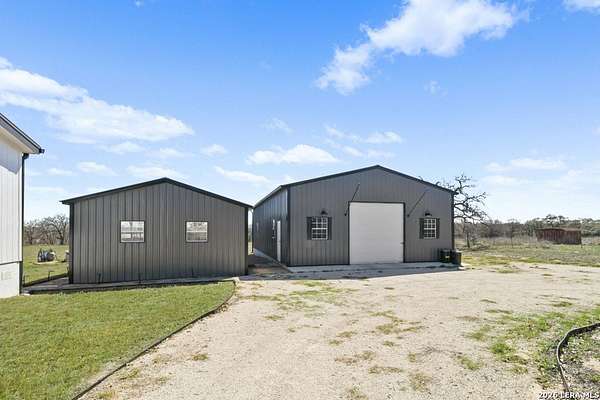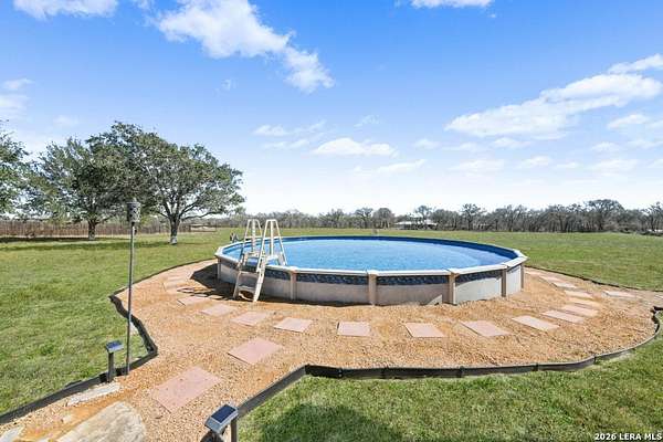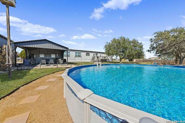 If you've been looking for move-in-ready living with room to work, play, and grow - this La Vernia property delivers!! Experience modern country living on a fully fenced property featuring a late 2023 Vintage Farmhouse II Flex Palm Harbor home designed with comfort and functionality in mind. This thoughtfully designed home offers an open-concept layout with stylish farmhouse finishes, creating a warm and inviting space perfect for everyday living and entertaining. Some of the features included: split 4 bedrooms, coffee bar, kitchen island with quartz countertop, media room, formal dining, and an office! Outside, the property truly shines. A 2023 built 50x30 insulated shop with electricity provides exceptional flexibility for business, hobbies, storage, or workshop needs. The shop includes a 10x10 roll-up door, two standard entry doors, and six windows for natural light. Entertain with ease under the 20x24 covered patio-(half shop), ready to finish out your custom outdoor kitchen vision, with electric and plumbing. Cool off in the 30-foot above-ground pool and enjoy wide open Texas country skies right from your backyard! Additional highlights include an electric entry gate for privacy and security for peace of mind. Schedule your private showing today!