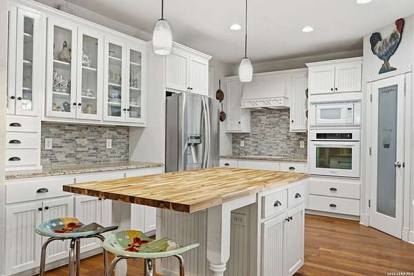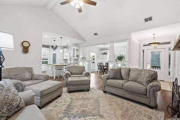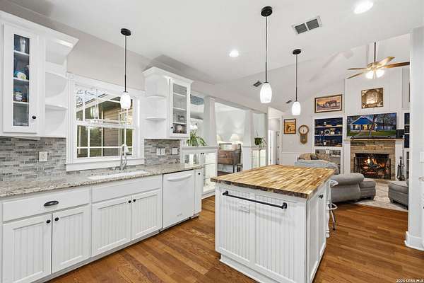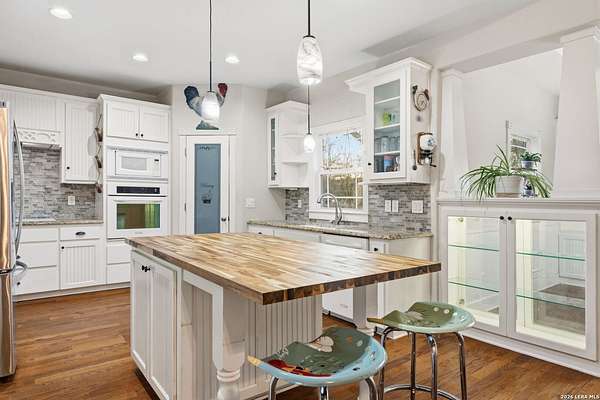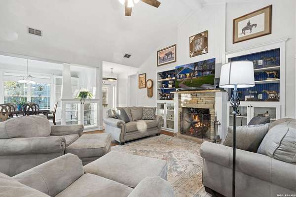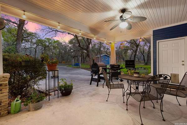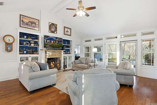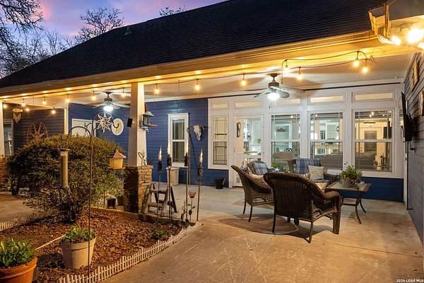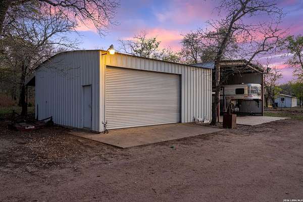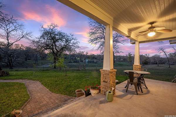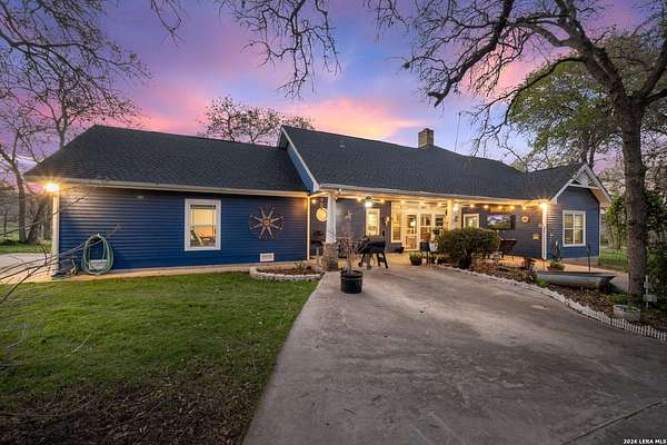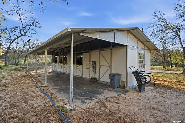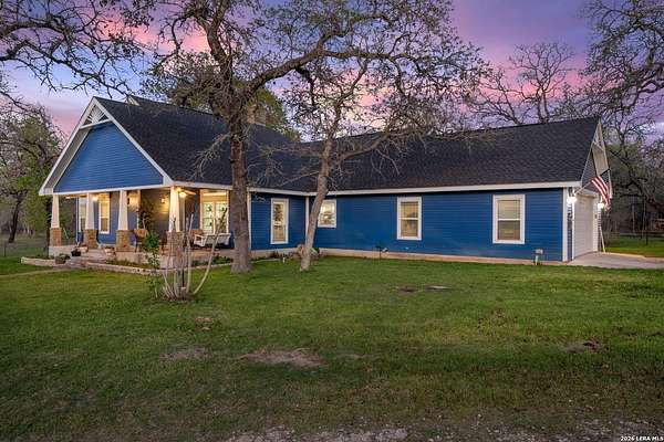 Rare opportunity to own a beautiful 10.6-acre ag-exempt property in La Vernia ISD, perfectly set up for horses, 4-H projects, or a hobby farm lifestyle. This well-equipped ranch features a 3-stall horse barn with tack room, dressage arena, cattle pens, hay barn, fenced and cross-fenced pastures, chicken coop with fenced chicken yard, RV/trailer barn, and a spacious 900-square-foot shop with drive-through doors. The half-acre pond is stocked with bluegill, catfish, and bass, and the property is filled with wildlife and studded with a variety of mature trees. A 500-foot deep water well adds to the functionality of this versatile property. The charming single-story home offers 3 bedrooms, 2 full bathrooms, 1 half bath, a formal dining room, a true 2-car attached garage, and tons of character throughout. Enjoy peaceful country evenings on the amazing covered patio complete with a TV, all while being just minutes from town for the perfect blend of privacy and convenience.
