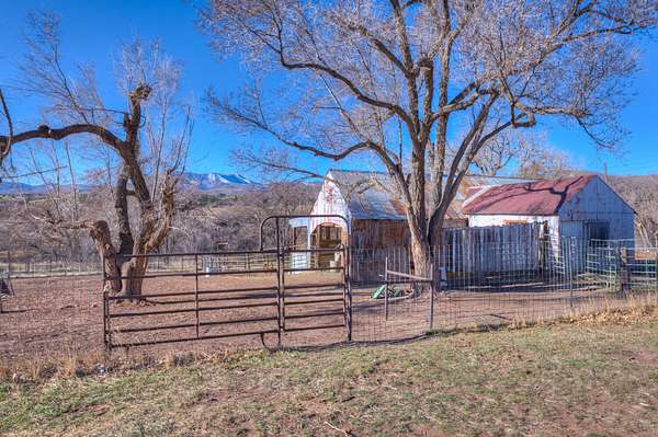 Expansive grazing land, historic barns, coops, and towering apple and cottonwood trees create an atmosphere that feels like coming home. Year-round access meets unmatched peace and privacy.
