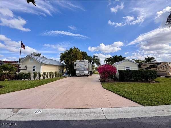 Lot 254 unfolds as the perfect winter escape here in RiverBend Motorcoach Resort, where sun-kissed days and gentle tropical breezes invite you to slow down, settle in, and truly recharge as the soft murmur of a nearby fountain drifts through the air and towering palms frame a setting that feels unmistakably Florida, making the thought of leaving almost impossible. This charming, untouched lakefront retreat welcomes you with a spacious grassy front yard and a concrete pad, while the coach house offers generous storage so everything has its place and nothing feels cluttered. With washer dryer, sofa, cabinets with counter top and mini fridge. Enjoy the property just as it is, or partner with your own contractor to elevate the space-add pavers, build a new coach house, or go all out with an attached screen enclosure and extended pavers leading toward the water for a truly custom retreat. Step beyond your private retreat and into the rhythm of RiverBend, where the Caloosahatchee River becomes a daily backdrop for sunrise walks, golden-hour skies, and the quiet joy of boats gliding by. Life here flows at your pace-unwind poolside under shaded umbrellas, sink into the warm embrace of the hot tubs, or step into the lively heartbeat of the River Clubhouse filled with live music, trivia, themed dinners, festive gatherings, and inviting spaces for billiards, reading, and relaxed conversation. For those who love to stay moving, pickleball, bocce, Zumba, and line dancing keep the days energized, while a variety of clubs-from the Creations Guild to remote control boating and racing-offer endless ways to connect. Even four-legged companions are part of the experience, enjoying their own impeccably maintained dog park. When the mood strikes to dine out rather than cook in, the clubhouse frequently during season serves breakfast, dinner, and delightful refreshments, rounding out a lifestyle defined by comfort, community, and elevated Class A motorcoach living.BONUS the property has a tenant until April 20, 2026 so a good way to start with some investment income for the season as well, lease will be honored upon purchase.