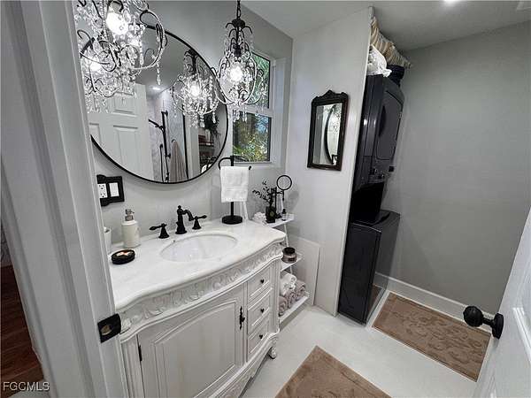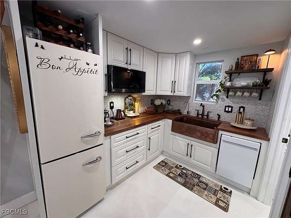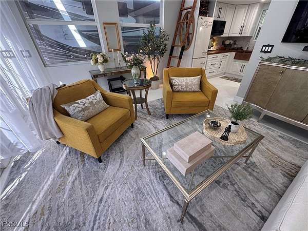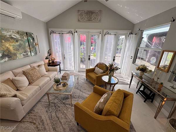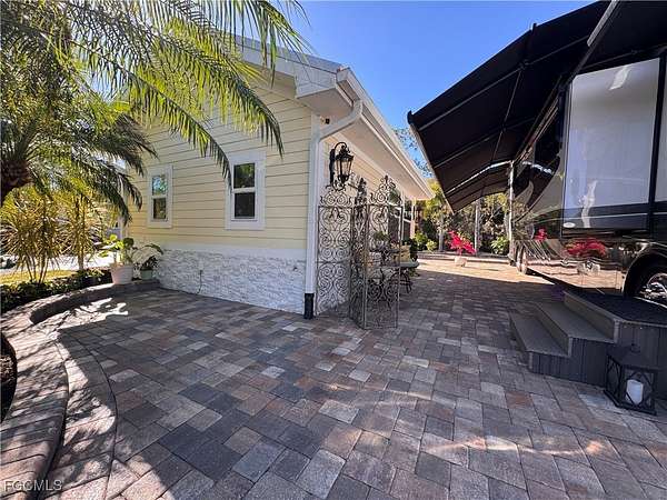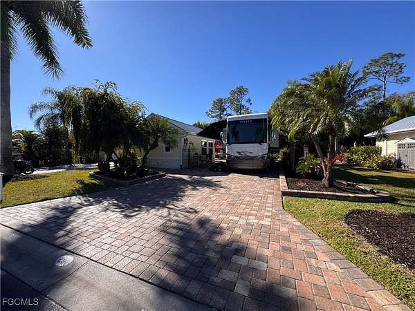 Lot 201 welcomes you with a quiet sense of joie de vivre, where pride of ownership is immediately felt. The coach house is adorned with Provincial-inspired French doors that set a gracious, welcoming tone evoking the charm of a European retreat and inviting you into a space designed for calm, curated living. Inside, the elevated interior unfolds as a restorative sanctuary, thoughtfully composed to inspire ease, balance, and understated sophistication. The open living area embraces low-stress, bespoke comfort, creating an atmosphere where life gently slows and everyday moments feel intentionally refined. Elegant furnishings elevate the open-concept design, offering inspiration for luxury living at every glance. The kitchen captures a delightful French country flair, from the charming white Bon Appetit refrigerator detail to the deep copper apron-front sink and thoughtfully set-in pantry-an inviting space that inspires even the most modest chef. Each element feels warm, welcoming, and effortlessly stylish. The bath offers a spa-like retreat with a tailored, almost atelier-style finish that is inviting, calming, and intentionally indulgent without excess. Above, a loft provides discreet additional storage and flexible guest sleeping space, preserving the uncluttered elegance of the main living areas and ensuring the coach house remains serene and composed. Every element of the interior speaks to comfort with intention, a space where simplicity feels luxurious and each day begins and ends in quiet sophistication. Outdoors, the property enjoys a coveted north-facing orientation, just a short stroll from the heart of RiverBend. Spend endless afternoons lounging poolside with tropical cocktails, or retreat to the back lanai, where freshly sealed pavers lend a polished finish to this cozy haven, beckoning you morning, noon, and night. Evenings invite unforgettable stargazing with friends and family beneath wide, open skies. Further enhancing the allure of the lot, RiverBend Motorcoach Resort offers a lifestyle defined by sophistication, connection, and effortless enjoyment. Set along the picturesque Caloosahatchee River, gentle breezes move through moss-draped oaks as tranquil water views invite you to slow down and savor the moment. At the heart of the community, the River Clubhouse comes alive with music nights, elegant dinners, lively trivia, and gatherings where neighbors quickly become friends. The Creations Clubhouse offers a welcoming retreat for artistic expression. Sun-filled days unfold beside the expansive pool and cabana bar, infused with a fun-loving spirit that makes every day feel like a getaway. Mornings begin with fitness classes, pickleball, or leisurely walks, while afternoons drift by on golf-cart cruises or relaxed poolside lounging. As evening settles in with glowing sunsets and shared laughter, it becomes clear, RiverBend is truly exceptional, a place where beauty, community, and connection make leaving feel nearly impossible.
