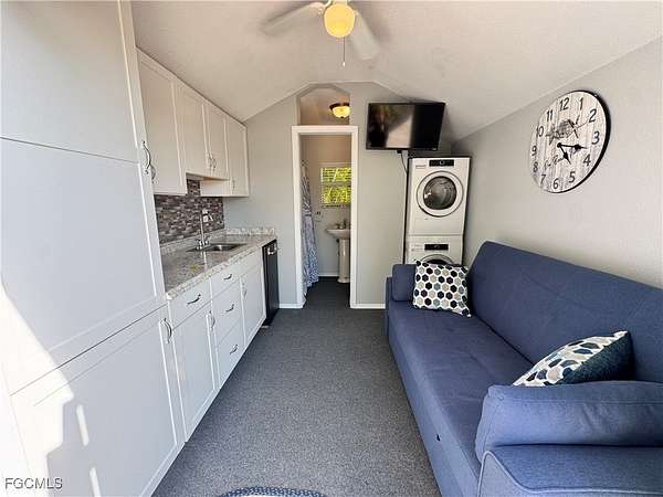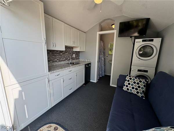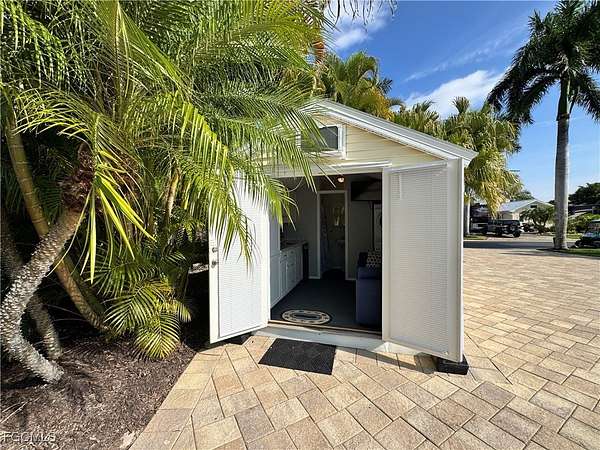 Lot 10 is a serene waterfront retreat where Florida's natural beauty takes center stage. Overlooking two peaceful ponds with a lovely fountain view, this setting invites you to slow down, unwind, and savor the charm of luxury motorcoach living. Sun-filled mornings melt into glowing afternoons, and evenings bring spectacular sunsets and painted skies that shimmer across the water, a daily show you'll never tire of. Thoughtfully placed pavers create a welcoming outdoor space, including a shaded area perfect for dining, morning coffee, or lingering conversations. The charming coach house offers a cozy escape for reading, relaxing, or hosting overnight guests. Inside, you'll find a functional kitchenette with sink and mini fridge, a pull-out sofa for guests, and a front-loading washer and dryer. The bathroom features a walk-in shower with built-in shelving, sink, and toilet. Double doors with blinds provide privacy, while the included TV, furnishings, and exterior lighting make this property move-in ready. As the day cools, enjoy the new fire pit, where warm flickers of light and gentle breezes create ambiance beneath skies painted in brilliant gold, pink, and blue. Whether entertaining friends or enjoying a quiet waterfront evening, the setting is pure Florida charm. Lot 10 also offers the potential to expand with a larger coach house and enhanced outdoor living space, allowing you to create a waterfront escape as relaxed or refined as you desire. Experience RiverBend Motorcoach Resort, where tranquil retreat meets vibrant RV community. Mornings are yours, relaxing with coffee by the water, strolling over the walking bridges, or staying active with pickleball or fitness classes. The River Clubhouse (open seasonally) is the hub for connection, hosting live music that may have you dancing in your seat, or on your feet. While themed dinners and taproom trivia spark friendly competition and laughter. Creativity thrives at the Creations Clubhouse, where hands-on classes and shared passions bring neighbors together in a welcoming way. Afternoons are sun-soaked and full of options, cruise the resort by golf cart, relax poolside with a cocktail at the cabana bar, or simply soak up the Florida sunshine. Evenings bring the perfect balance of calm and fun, glowing skies over the river, laughter around the pool, and the fire pit adding warmth and ambiance for unforgettable nights under painted skies. RiverBend isn't just a place to stay, it's a lifestyle. A luxury RV motorcoach resort where tranquility and fun coexist beautifully, friendships form naturally, and every visit leaves you planning the next. One stop here, and you'll see why one visit is never quite enough.