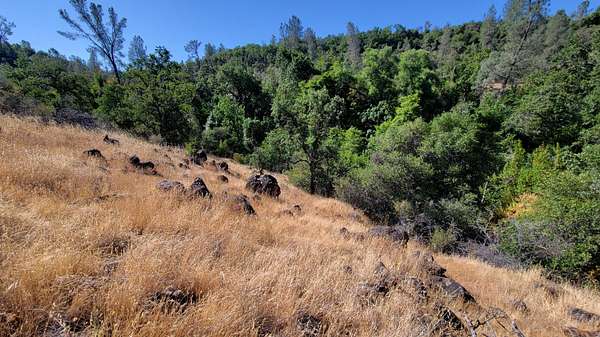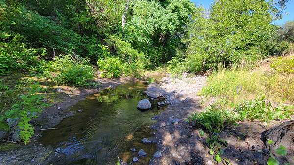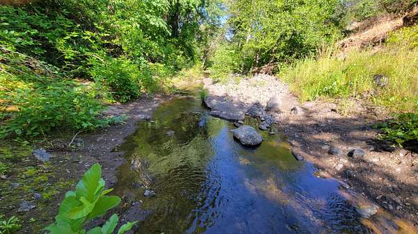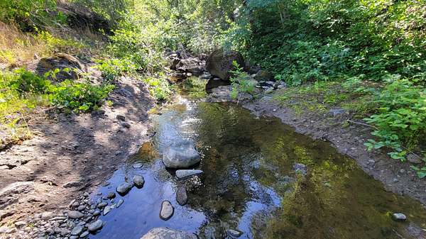 10 acres rural acres backing up to Lovely Lack Creek. I did see many small fish in the creek in two separate places. There is an entrance into the property but it isn't a permitted driveway. Come build your home amongst the oak tree studded privacy. This property is a blank canvas to which dreams can be made. The elevation ranges from about 1300 ft to 1420 ft. The property is just 1.4 miles on a gravel/dirt road from paved Dersch Rd and only about 14 miles from Redding, CA. If you plan to build, you will need a well, septic, and power. There is a power pole on the road about 550 feet away.