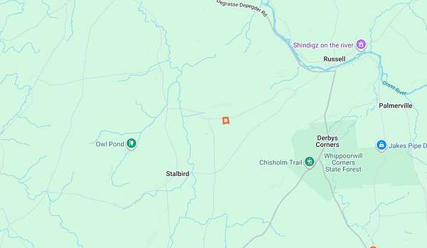 5 acre Wooded Cabin Lot for Sale Near State Land, Russell NY! Prime for Outdoor Recreation in NY's St. Lawrence County! This 5-acre wooded lot would be a great place for Summer Camping or to build a country cabin for the family. This lot is located on a year-round town road and is just off the beaten path. It's local to the Grasse River, Plumb Brook and the Whippoorwill State Forest. The area offers great populations of whitetail, bear, turkey, and other small game. The Grasse River and surrounding waters offer great opportunities for trout fishing, and this is an ATV /snowmobile-friendly area. Property Features: 449 feet of road frontage. New Survey. Beautiful Hardwood Forest with large White Pines mixed in. Nice Level lot with a few choice building sites. Easy approach from the town road. Area features: 5 miles to gas station/convenience store. 20 minutes from Canton, NY. Grocery stores, etc. 30 minutes to Potsdam, NY. Walmart, Lowes. 30 minutes to Cranberry Lake and the 5 Ponds Wilderness area. 45 minutes to Canada. This property is in a prime location for the outdoor enthusiast to use as a base for your outdoor adventures!