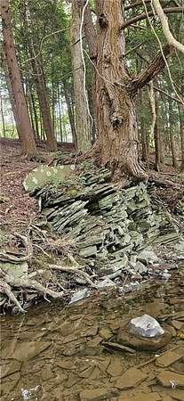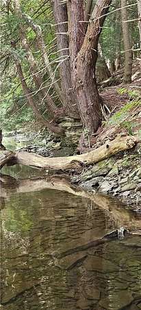 You will call yourselves lucky when you take a look at this gorgeous 9 acres along the meandering brown trout filled Fall Creek. Snap it up before someone else falls in love with it so you can call the forest, the Hemlock grove and the perfect spot to build your home, your own. Waterfront property like this with 1175 feet along the Creek rarely comes along. Hike in the woods, listen to the birds, plant a little garden, have a picnic (picnic bench included) and at the end of the day relax and enjoy the magic of a fire in the firepit and the sound of flowing water.