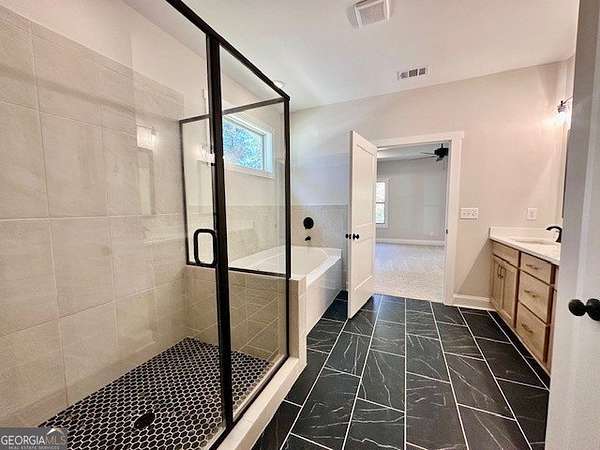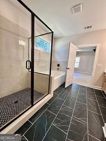 - Double Vanity, Master On Main Level, Separate Shower, Tile Bath, Vaulted Ceiling(s), Walk-In Closet(s)
