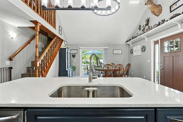 - Breakfast Bar, Ceiling Fan(s), Ceiling-9+, Ceiling-Cathedral, Closet(s) Walk-In, Countertops-Stone, Custom Cabinetry, Deck On Waterfront, Deck Open, Detector-Smoke, Dishwasher, Disposal, Dryer Hook Up Electric, Dryer Hook Up Gas, Firepit, Foyer Entry, Garage Door Opener, Garage Utilities, Garage-Heated, Generator Ready, Great Room, Kitchen Island, Landscaped, Main Floor Laundry, Open Floor Plan, Patio Covered, Patio Open, Porch Covered, RV Parking, Range-Gas, Range/Oven HK Up Gas/Elec, Refrigerator, Stand Up Shower, Tub/Shower Combination, Water Heater Electric, Window Treatments, Workshop