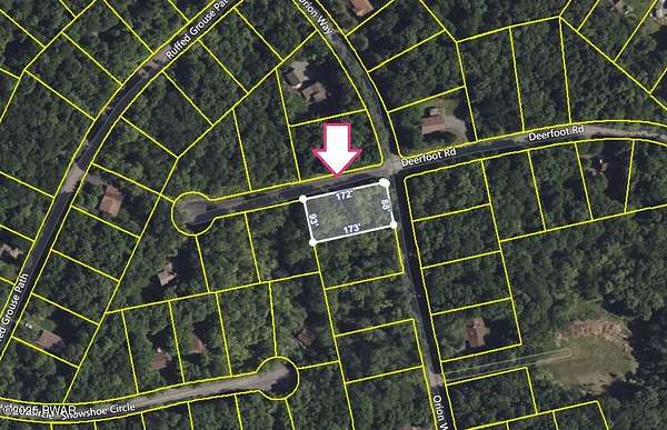 From 590 turn onto Ledgedale Road. Then make a left onto Whitetail Lane and another left on Deerfoot Road. The lot is the first lot on the left across the intersection.
