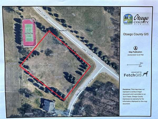 From Gaylord take M-32 east to Krys Rd. Turn right onto Krys Rd then left onto Kassuba Rd. Turn right onto Lake Club Drive. Prpoerty is adjacent to tennis court/pickleball court.