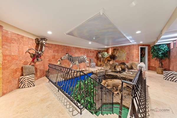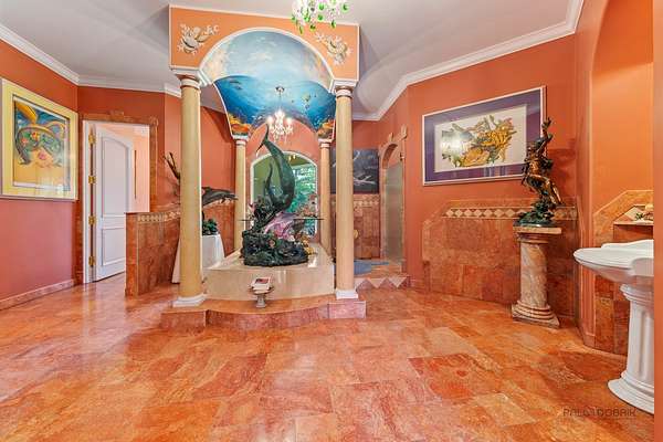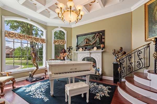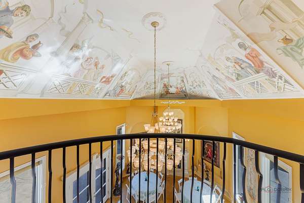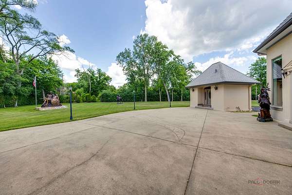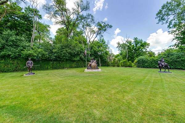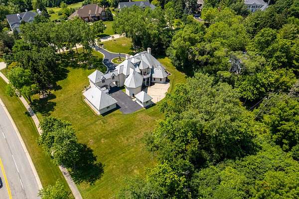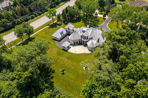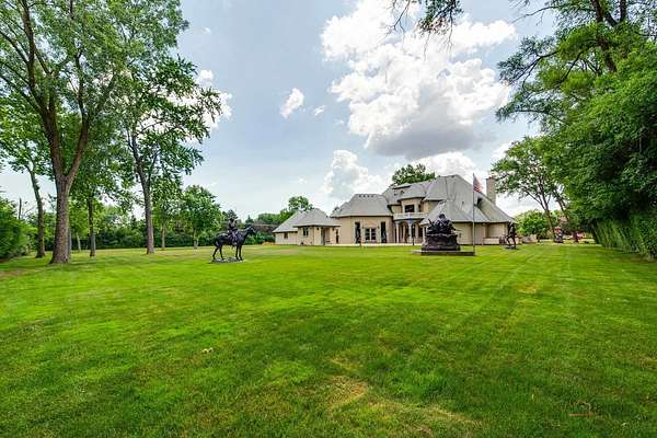 Discover a truly extraordinary residence where luxury meets distinction in this magnificent three-story, 6-bedroom, 8.2-bath royal retreat, set on nearly two acres in prestigious Lake Forest, known as The Hidden Museum. Home to a museum-quality art collection, this architectural masterpiece has never been used as a full-time residence and remains in mint condition. Enter through a gated circular driveway and be greeted by timeless elegance, exceptional millwork, and a combination of gleaming marble and hardwood flooring throughout. Designed for both entertaining and refined living, the home features a breathtaking great room with soaring 40-foot ceilings, a grand fireplace, walls of windows that fill the space with natural light, and access to the expansive grounds. A 4-person elevator provides seamless access to all floors. The main level boasts two kitchens-one currently in use and another potential main kitchen intended for the green room adjacent to the great room. The first-floor primary suite is a true retreat, complete with a spacious walk-in closet, a serene sitting room, and a luxurious bathroom with dual vanities, a walk-in shower, and space for a central soaking tub. Upstairs, you'll find three generously sized en-suite bedrooms, a loft, and a versatile bonus room. The third level adds even more flexibility with an additional en-suite bedroom and bonus space, ideal for guests or creative uses. The fully finished basement is a showstopper, featuring a full kitchen, a spa-style bathroom, and an unused indoor pool with room to create a full wellness retreat or entertainment zone. Beyond the main residence, a coach house offers a 4-car garage and private living quarters with a bedroom suite above, ideal for guests, extended family, or staff. An additional wing, connected by a breezeway, offers two more rooms and a full bath, while a separate pool house further enhances this estate's rare offering. Situated on a massive corner lot, the flat, leveled backyard is a blank canvas ready to become your dream outdoor oasis. Ideally located near the Metra station, shopping, dining, and scenic lakeside attractions, this home offers unparalleled space, privacy, and potential. A rare opportunity to own one of Lake Forest's most unique and prestigious estates.