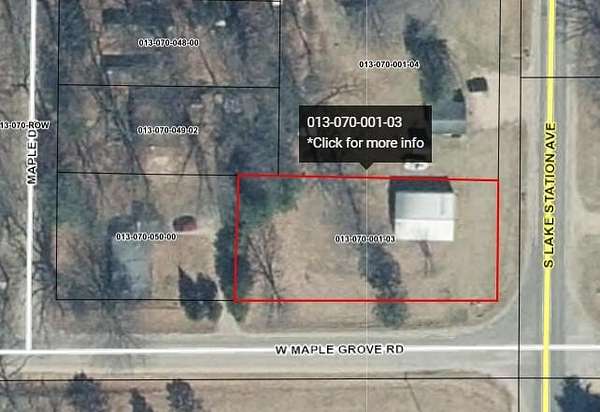 Est $441/moOpportunity is knocking, 3 lots with pole barn on the corner of Maple Grove and Lake Station steps from Crooked Lake and Perch Lake. Great location for a business, off water storage or to build alongside the pole barn.