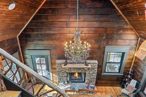 - Bar, Cathedral Ceilings, Chandelier, Natural Woodwork