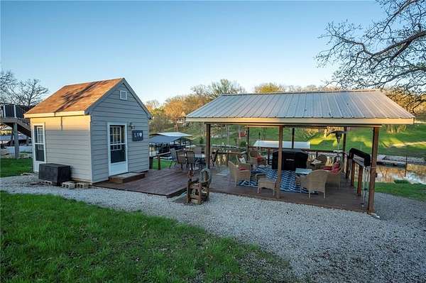 Waterfront lot tucked into a quiet cove and located next to a community area, offering extra green space to enjoy! This well-maintained property is set up and ready for summer fun, featuring a shelter equipped with a refrigerator and A/C unit to keep things comfortable, plus a beautiful covered patio perfect for relaxing in the shade. Includes plenty of outdoor chairs and patio furniture to round out this turnkey setup! The single-well boat dock includes a lift and jet ski port, making it easy to get out on the water. Whether you're looking to unwind or entertain, this property has you covered. Bonus: There's also an option to purchase the residential home located just across the street for added convenience, MLS #2615029.
