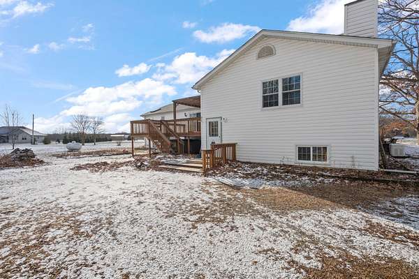 This well built ABUNDANTLY SPACIOUS bi-level home is ready for your aesthetic touches!!! A home that has space for everyone with room to spare!!! The main upper level has a large living room area, a formal dining room, an oversized eat in kitchen and an additional family room with a wood burning fireplace as well as a split bedroom floor plan. The master suite has a walk in closet and separate soaking tub and shower. On the opposite side are the other two bedrooms as well as a full hallway bath. The lower level is ready to go with a separate "work out" area or flex space, another living area measuring 23 x 26!!! Additionally this level has a separate room formerly used as a salon as well as another 3/4 bath, a laundry room and a 13 x 40 foot storage area with shelving galore!!! Recent updates include a new roof on the home and garage in 2022, a newer sump pump and pressure tank, a sliding glass door off the dining room in 2023, a newer GENERAC whole house generator with its own separate propane tank (serviced yearly). The furnace and ac units are approximately 12 years old. This home has INCREDIBLE STORAGE and sits perfectly on a corner lot with peaceful views, a great back deck as well as covered front porch and a 3 car detached garage all sitting on a little under 2 acres!!! This home is an estate and being sold as is but open to all loan types. If you need space this one is for you!!! HUGE POTENTIAL IN THIS SPACIOUS HOME!!!