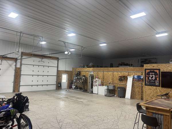 Peaceful country retreat turnkey 2 bed / 1 bath barndominium on 5 acres. The open-concept living area features a spacious layout, a large bathroom, and a modern kitchen with stainless steel appliances, clean, bright, and ready for comfortable everyday living. Attached is a finished 2,000 sq ft shop built for serious projects. Fully insulated walls, R-50 blown-in ceiling insulation, bright dimmable LED lighting, and radiant floor heat. The shop's heating is zoned separately from the living quarters so you can maintain different temperatures in the house and workspace year-round. Property highlights: the 5-acre parcel is already subdivided (the adjacent parcel is a basement lot), includes a one-acre asparagus field, trails winding through the woods, a long private driveway, and a chicken coop. Located on a very quiet road, this secluded setting offers privacy and the feeling of a true country escape. Perfect for someone wanting a comfortable home plus a high-performance shop, hobbyist, small-business owner, or homesteader. Contact for showing and additional details.