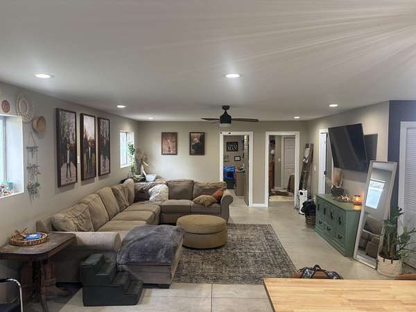 - Ceiling Fan(s), Eat-In Kitchen, Kitchen Island, Open Floorplan, Recessed Lighting