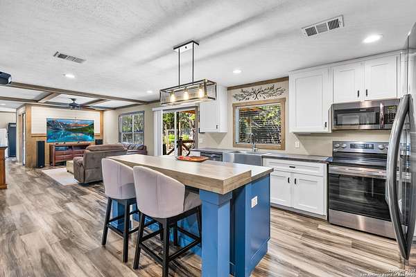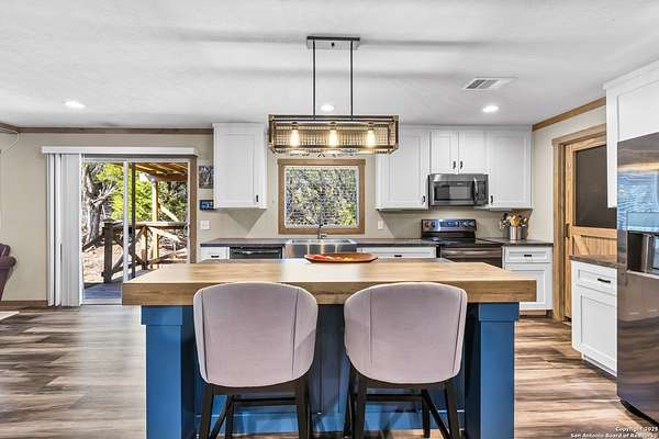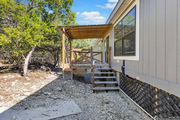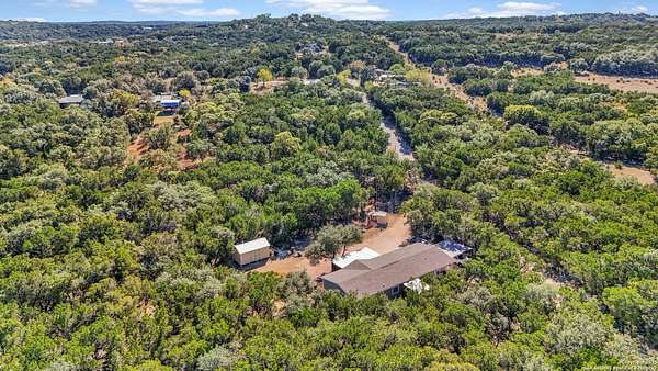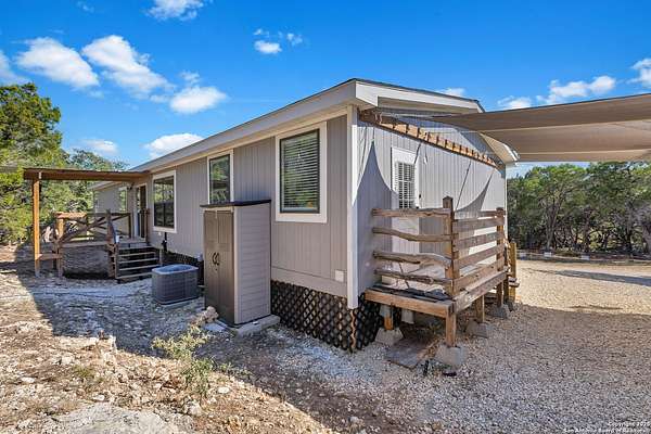OPEN HOUSE: 01/10/2026 from 1:00 PM to 3:00 PM 01/11/2026 from 1:00 PM to 3:00 PM Nestled on 1.8 serene, wooded acres in the heart of the Texas Hill Country, this 2021 Clayton Amelia home offers a perfect combination of modern comfort and peaceful country living. With 4 spacious bedrooms and 2 full bathrooms, the open-concept living, dining, and kitchen area creates an inviting space for entertaining or everyday living. The primary suite is thoughtfully separated from the other bedrooms for added privacy. The modern kitchen features a brand-new LG refrigerator and a 2-year-old LG stove, ready for your culinary creations. Enjoy the outdoors from the screened front deck and small covered back deck. The property is private and peaceful, positioned on a corner lot at the end of the road, with wooded front and back areas, a flat backyard, and a sloped front yard-perfect for adding a detached garage, workshop, or additional landscaping. Practical features include a DuroMax dual-fuel backup generator with Generlink connection and a 100lb propane tank (not yet installed), canopy-covered parking for two vehicles, and a 12x20 outbuilding ideal for tools or lawn equipment. Water security is ensured with a 600+ foot DK well with insulated and heated well-house, outside water lines feeding a filtration and water softener system, and a water heater maintained annually with an electronic anode to prevent calcium buildup. This well-maintained, move-in ready home combines modern conveniences, functional outdoor spaces, and Hill Country charm, offering a rare opportunity to enjoy country living without sacrificing comfort or accessibility.