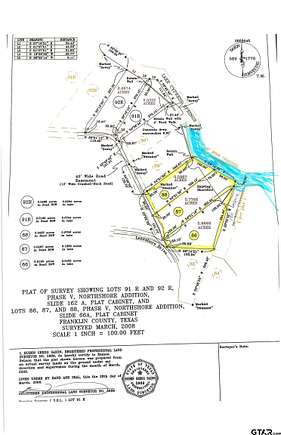 From I--30 at Mt. Vernon, take HWY 115 south about 8 miles. Exit to the right just before crossing the Lake Cypress Springs bridge. Enter Northshore gate on Lakeshore Drive and follow it around the shoreline about a mile until you see the sign on the middle of the 3 lots on the left...it is actually on a small loop to the left off of Lakeshore Drive (but still called Lakeshore Drive). The nearest house address is 455 Lakeshore Drive for GPS approximate location.