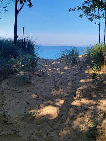 Build your dream retreat on Lake Michigan. Enjoy the unparalleled peace and serenity of lakeshore living on this stunning 2.75-acre building site. The lot features a gentle, rolling contour and is graced with mature trees, offering a truly private setting. A scenic, private drive leads to over 200 feet of shared, sandy Lake Michigan frontage, where you can spend your days enjoying beach activities and end them with breathtaking, world-class sunsets. Located just 2.5 miles North of Orchard Beach State Park and 4.5 miles to Downtown Manistee. Schedule your private tour today to experience this rare property.