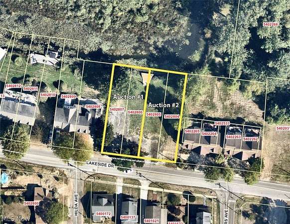 Absolute Auction. (2) Vacant Lakefront Lots. Springfield Lake, Private Dock, Zoned R4. Summit County, Lakemore Village, Springfield LSD. Live Onsite with Online Bidding. Owners no longer have a need. ABSOLUTE AUCTION, all sells to the highest bidder. ONLINE BIDDING BEGINS WEDNESDAY, APRIL 15, 2026, AT 9:00 AM, AND AUCTION LIVE ON-SITE BIDDING WILL BEGIN THURSDAY, APRIL 16, 2026, AT 12:00 PM. Entirety - .4595 acres total. 120' x 145' total. All utilities are available at the street. Build one or a multitude of homes with lake frontage, nice private dock with Springfield Lake (289 acres) access. Real estate half-year taxes are $939.51. Great opportunity to develop or turn into a weekend getaway. 4 parcels #5402806, 5402807, 5402805, 5402804. Call Lakemore Village zoning for your particular needs. Walk the property with permission only, call the auctioneer. Auction #1 - .2597 acres total with 60' frontage and shared dock. Parcels 5402806, 5402807. Auction #2 - .1998 acres total with 60' frontage and shared dock. Parcels 5402805, 5402804. Auctioneers' Note: Auctions 1 and 2 will be offered separately and together, sold whichever way it brings the most.