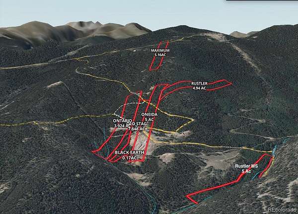 4X4 REQUIRED - The properties are best accessed from the Fall River Rd exit of I70. Take the exit to the south side frontage road Stanley Rd and turn left for 700' and take a hard right turn on to Trail Creek Rd (136) and travel 2.9 miles where it intersects with Spring Gulch Rd on the left. If only showing the upper "Maximum" parcel; it is easiest accessed by taking Spring Gulch Rd off of Trail Creek Rd for approximately 1.68 mi then take a hard right turn on to Lamartine Rd for .94 mile to the property. Most of parcel lies beneath the road. There is an unnamed much rougher Forest Rd about 2/3rds of the way along Lamartine which descends through to the other 5 parcels and ultimately back down to the Rustler MS parcel and Trail Creek Rd.