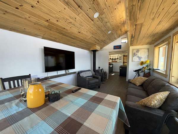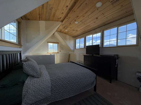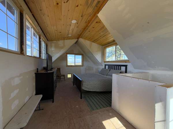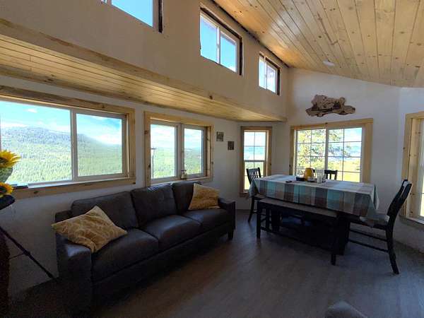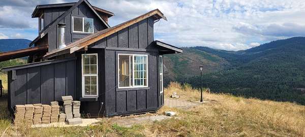 Est $856/moAbsolutely stunning views of the Kettle Crest and surrounding mountains from this cute 1 and a half story off-grid cabin. The living room features vaulted tongue and groove ceiling with sheet rocked walls throughout. The well thought out kitchen has plenty of cabinet space, farm style sink and center island with a high end Italian made gas range. There's an enclosed water tank (well hasn't been drilled) but the plumbing has not been hooked up yet. The cabin has been set up with an on-demand hot water heater, shower and composting toilet. Light and bright inside plus a covered deck to sit and enjoy the views. Extremely private.
