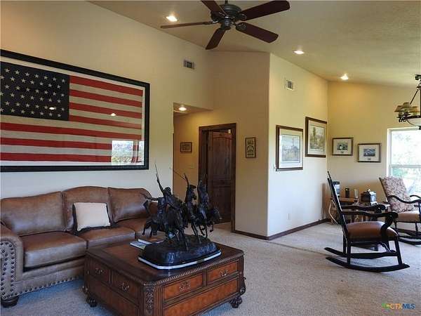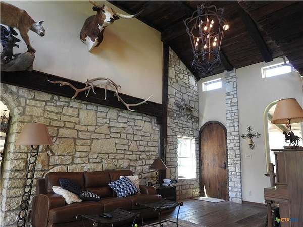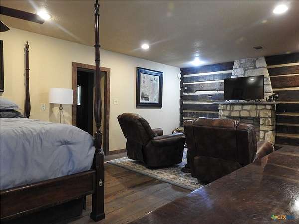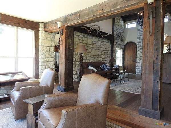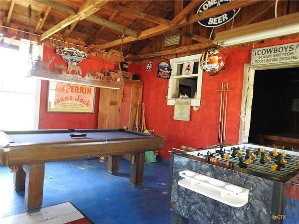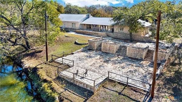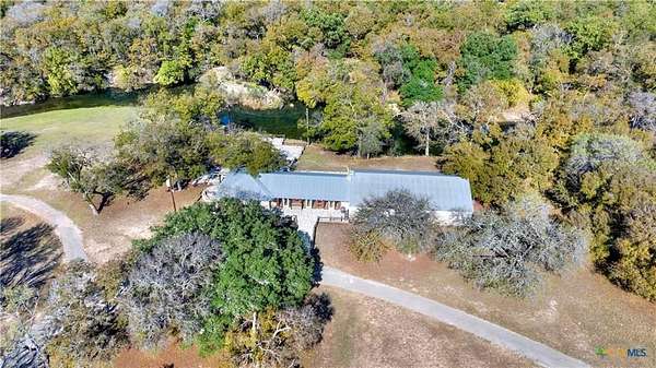 Horseshoe Falls, A Historical Lampasas Gem! Also known as Gunderland Park, a sprawling 378-ac high-fenced ranch. This is a very rare opportunity to own both sides of Sulphur Creek, as it flows year-round through the ranch. Be transformed to another world with the abundance of native tree cover, wildlife, and the sounds of living water. Adored by many, locals can recall fond childhood memories of fishing and camping here. An original merry-go-round and hand-built rock BBQ pits, benches, and tables still remain intact. An upper pasture blooms with sunflowers, attracting quail hunting enthusiasts. Most recently, this one-of-a-kind property is being used as an exotic ranch, serving guests with exclusive hunts and catered private events. The ranch's centerpiece is a spacious 2,500+ sq ft 1.5-story primary home with 4 bedrooms, 2 bathrooms, and two living areas, offering breathtaking views and sounds of the ever-flowing Sulphur Creek dam. This site holds important significance as Captain J.F. Brannon of the Ninth Infantry commissioned 193 men to build the Lampasas State Park & Dam in June 1933. Beyond the main residence, discover a 2400 sq ft., climate-controlled main hall overlooking the live water of Sulphur Creek, equipped with restrooms and a rustic rock fireplace upon entry. Perfect for weddings, private or corporate events, or private family get-togethers. Capable of seating up to 150 people comfortably around dining tables, with additional seating outside on the rock patio. Additionally, there are six fully restored and uniquely decorated cabins. All with unique themed decor with names such as: The Ranger Station, Bass Bungalow, Birds Nest, Tee Pee, La Cabana & of course, the JAIL. Most cabins sleep 2-6 guests with full bathrooms. A Lodge, aka The Horn Room is equipped with a full kitchen for serving a larger party of guests at once. Enjoy a game of pool or darts in the game room. Pictures and words cannot adequately describe this unique paradise.