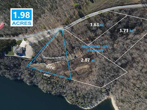 Exceptionally rare 1.98+/- acre waterfront sanctuary on pristine Table Rock Lake joining nearly 400' of Corps of Engineers shoreline. From this elevated homesite you'll enjoy unobstructed, year-round 180 blue-water main-channel views that stretch for miles. The parcel features dramatic rock outcroppings, expansive shelf-rock patios and a gated private drive in place. Wildlife is abundant, with eagles, wild turkey and deer frequently seen. The lot borders a spectacular $3M estate on exclusive Pokeberry Road, offering privacy without isolation. Conveniently located: 10 minutes to Kimberling City, 20 minutes to Silver Dollar City and Big Cedar Lodge, and under 30 minutes to Branson. Nearby boat slip available. Seller is also offering three adjacent lots and the full 8-acre tract in separate listings, inquire for details or to schedule a private tour.