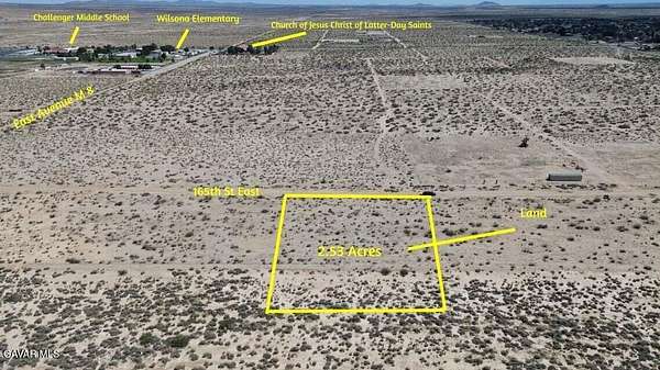 NEW LOWER PRICE -- AMAZING LAND OPPORTUNITYDiscover 2.53 acres of affordable land centrally located near established neighborhoods, Challenger Middle School, and The Church of Jesus Christ of Latter-day Saints. Situated in the City of Lake Los Angeles, this parcel offers mostly flat usable land just a few yards from an existing neighborhood and not far from 170th St East, a main access road.This is an excellent opportunity whether you are looking to invest, hold, or explore future development possibilities. All buyers are encouraged to verify current use and development options with the city.Go direct -- use coordinates: 34.636137, -117.842847 (copy and paste into maps)Bring your offer and secure your lot today.Visual lines in photos are for reference only and do not represent exact property boundaries. Stick and flag shown denote approximate lot width only and are not a land survey.