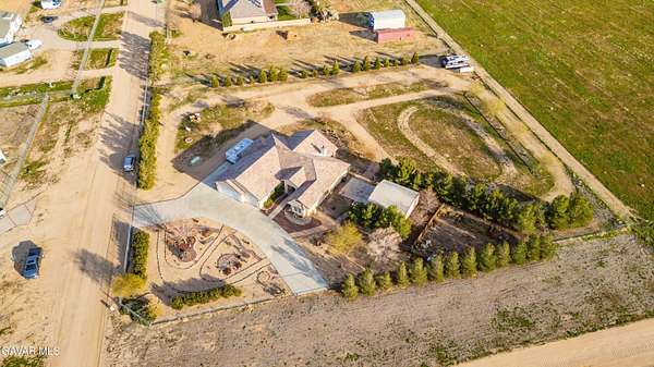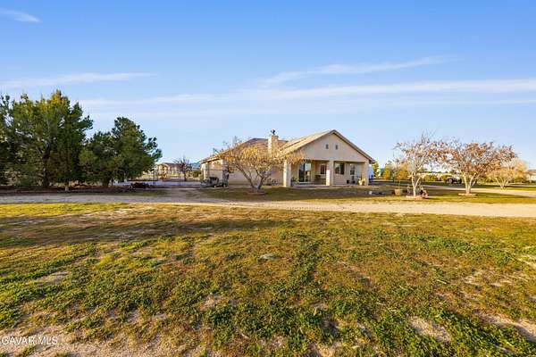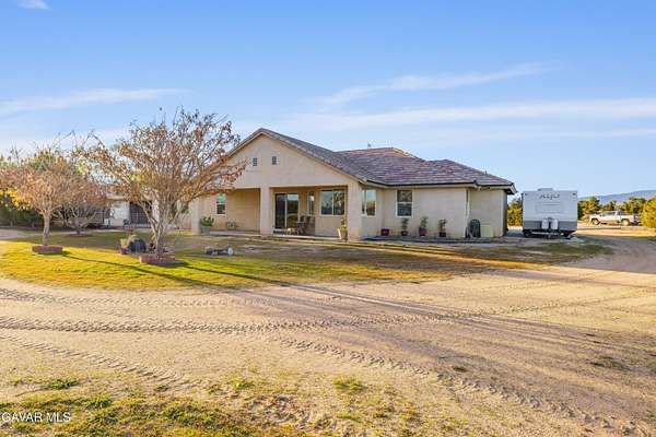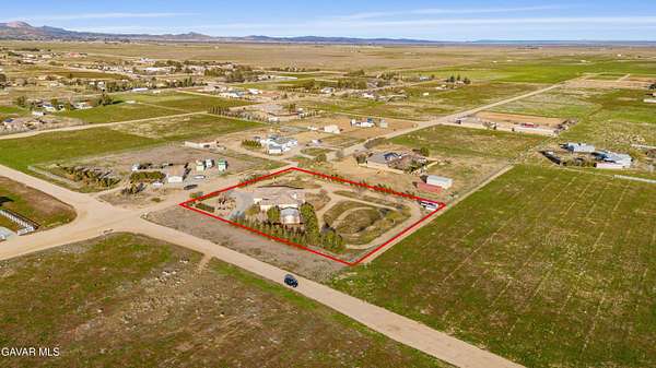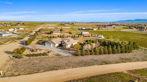 Welcome to the Great Outdoors! This beautiful, ranch style, single story home features a bright and open floor plan with everything you would expect in a custom home. From the concrete circular driveway to the expansive upgraded kitchen to the custom tiled shower. With four bedrooms and 3 bathrooms there is plenty of space for the kids, or extended family. The primary bedroom and bedroom #2 are on the west side of the home, and bedrooms #3 and 4 are on the east side of the home. Currently, 2 of the bedrooms are being used as an office and work-out room. The home is all one level (no step-down) and the main areas have upgraded tile flooring, and the bedrooms have neutral tone carpets. The large kitchen also employs a large breakfast bar and opens up to the breakfast nook area. The wood burning fireplace is a nice focal point, warm and inviting for those family get-togethers. The finished three car garage was strategically built to avoid the westerly winds and has become a popular 'hang-out' for family gatherings and with direct access to the main house, there is a good sized mudroom/laundry room with plenty of storage and counter space . In addition to the main house, there is an enclosed metal building that could be used as a workshop, protect your toys and is currently being used to house the tractor and other supplies needed to maintain the totally fenced 2.5 acres. There is drip irrigation along the perimeter fencing so this property could be ideal if you want to raise your own farm animals. There is also and fenced side yard just to the west of the metal building. You really do have to come see this home for yourself to have full appreciation. Oh, and by the way, as far as dirt roads go, this one is well maintained and very drivable. Buyer to verify all.