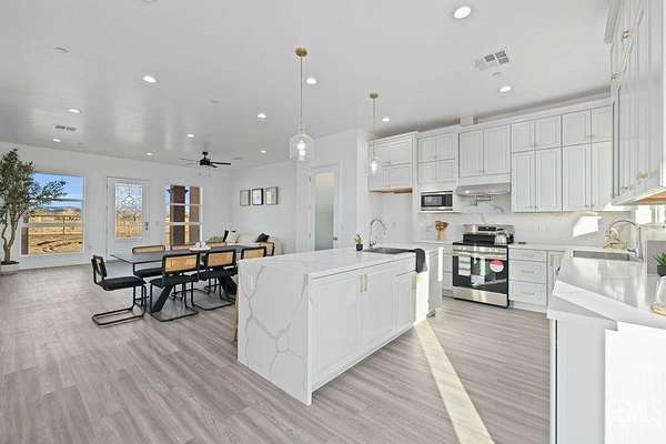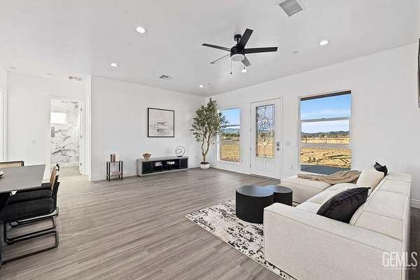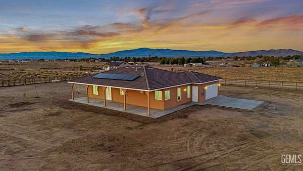 Brand-new 2025 construction in highly desirable Antelope Acres! This stunning 1,833 sq. ft. home sits on 2.5 fully fenced acres and offers modern comfort, open space, and high-end design throughout. Featuring three spacious bedrooms and two beautifully finished bathrooms, this home is filled with natural light thanks to oversized windows and soaring 10-foot ceilings with 8-foot doors. The gorgeous kitchen is a true standout, showcasing waterfall countertops, abundant cabinetry, two sinksa full kitchen sink plus a convenient prep sinkand a bright, open layout perfect for cooking and entertaining. Oversized windows bring in amazing natural light, highlighting every detail. Enjoy the modern touches throughout the home, including recessed lighting, ceiling fans, and paid solar for energy efficiency. The large master suite offers an enormous walk-in closet and peaceful views of the property. At the back of the home, a full-length covered patio with ceiling fans spans the entire widthperf
