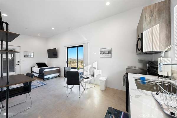 Welcome to total serenity. Escape from it all in this almost-new tiny home. This home comes fully furnished and is equipped with a paid for 2.9 kw solar system, tankless water heater , custom cabinets, modern plumbing fixtures, Ruvati sink, full size stove and microwave oven, Glanz retro refrigerator ,quartz counter tops, mini spilt hvac system, sloped ceilings with smooth drywall finish, polished concrete floors, lots of recessed can lighting, prewired for audio and video and is set up with high-speed internet with ring cameras, EV charge prewiring into the carport is ready for charge station of your choice. The extra concrete around the side and back of home make a nice area to lounge and spend time outside the views off this property are amazing. All this on a fully fenced 5-acre parcel with lots of surrounding BLM land. Dirt road into property is a bit long but well worth it. Realtor is a licensed contractor and property owner.