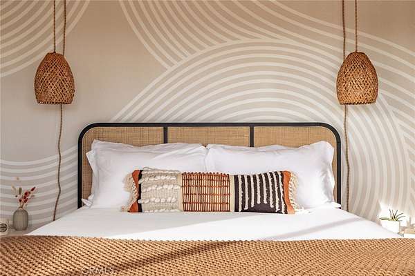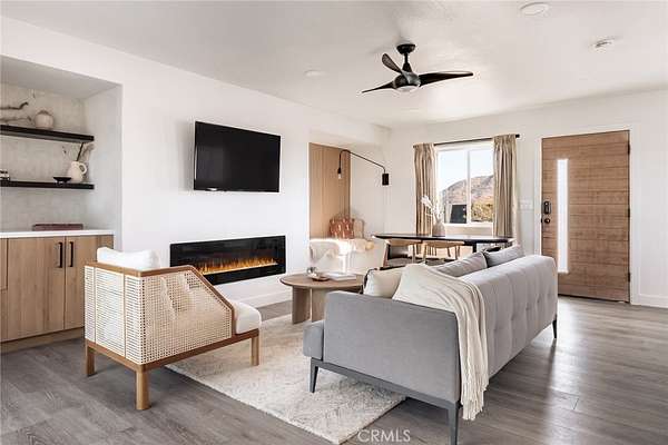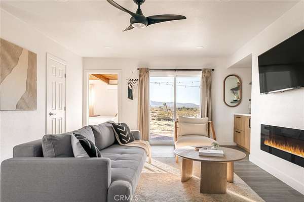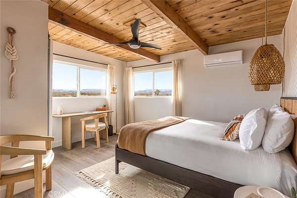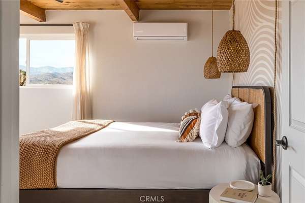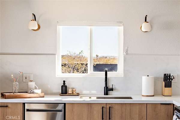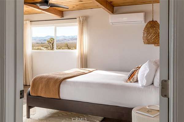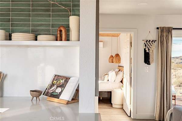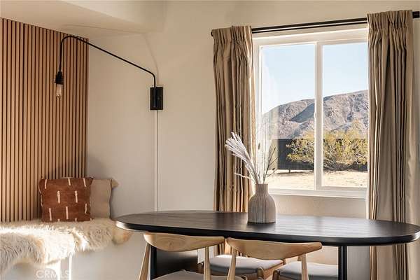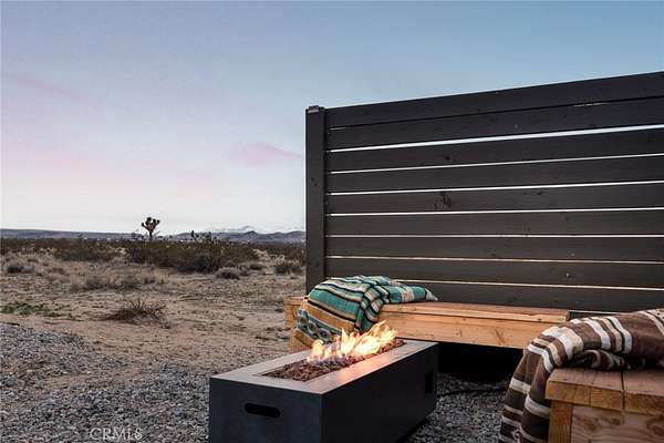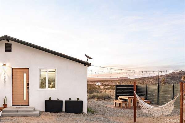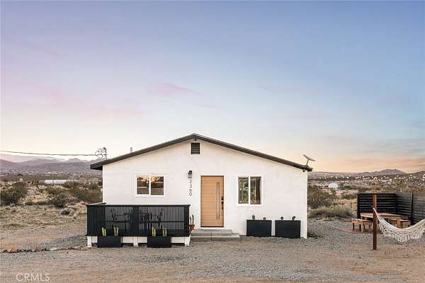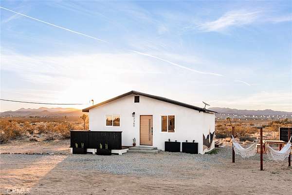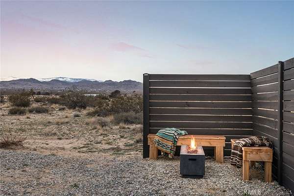 Welcome to Casa Asaya, a dreamy chic retreat surrounded by acres of desert flora, stunning 360 degree mountainscapes, and iconic postcard views. Splashes of pink and yellow illuminate snow-capped mountains and ancient volcanic mesas to the west, awe inspiring moon-rises ascend over Goat Mountain to the east, thousands of acres of open BLM land stretching into the horizon 1 block north, and big sky views of Joshua Tree National Park to the south - all yours for the taking. The world-famous Integratron sits so close it appears almost as if it’s in your own backyard. Stepping inside, the striking exterior landscape is juxtaposed with modern finishes in a soothing neutral palette featuring custom tile and millwork throughout. Cozy up with a book in the living room cubby, take a bubble bath in the ultra-modern bathroom, cook a gourmet meal in the spacious new kitchen, or wander out to the firepit for front row seats to a meteor shower under Landers’ famously dark skies. This special 2.5 acre property is fully fenced for your furry friends and sold turnkey with all furnishings and Starlink internet. You’ll never want to leave, but should you choose to roam you’re minutes to La Copine, Giant Rock (the pizza place or the historic rock), Joshua Tree National Park, Pappy & Harriets, hiking, and so much more.