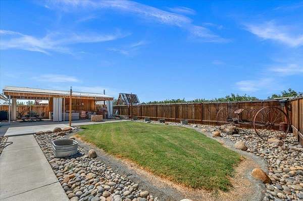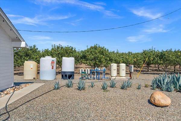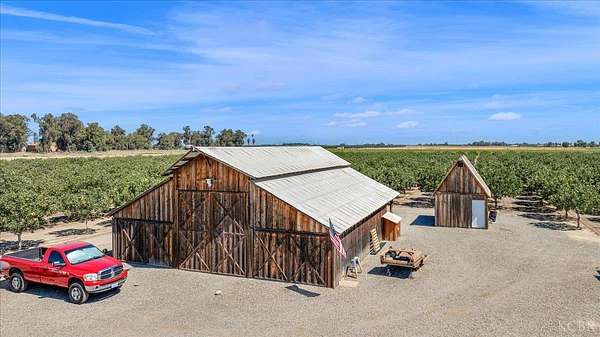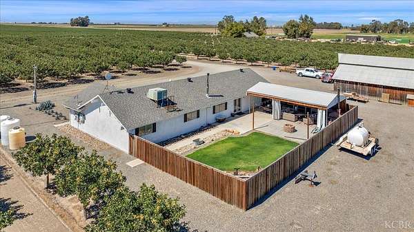 Take advantage of this opportunity to purchase a producing pistachio orchard. This property consists of 27.5 acres of farmland with 24 +- acres of producing mature Golden Hills pistachio trees on UCCB1 rootstock ages ranging from 10th leaf to 13th leaf. 2024 crop year production was recorded at 2,850+- lbs./acre. This orchard features a dual line drip irrigation system and a 600' deep main well with a 3-phase 30Hp submersible pump, there is a flowmeter fertilizer injection system with a 500-gallon tank & a 1000-gallon sulfuric acid injection. The property also includes 27 shares of Jacobs Rancho Irrigation District Tier A water, with opportunity to buy additional water from year to year when available. The property features canal access with a turnout and 2 standpipes for flood irrigation when district water is available. There are two additional 25' shallow ag wells and a domestic well to supply the home that are powered by solar energy. This ranch also includes a custom 3-bedroom 2-bathroom home featuring 1568 square feet of living space with an outdoor kitchen, fenced yard, a well shed & 32 owned solar panels. owned solar panels and a 1,600 square foot rustic barn perfect for storage or a potential venue and a Bend Pak car lift inside.