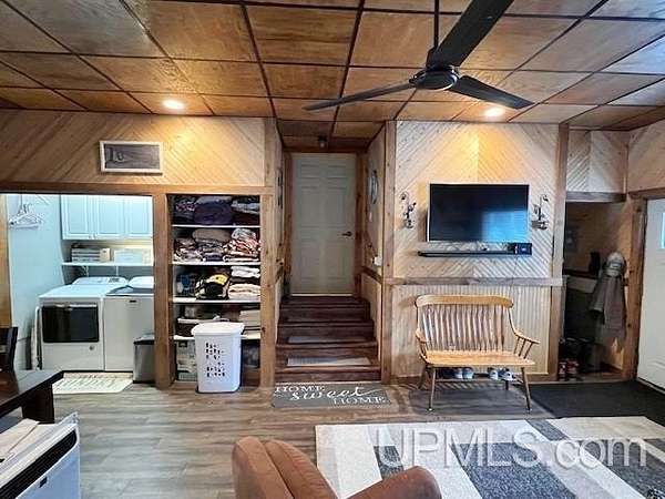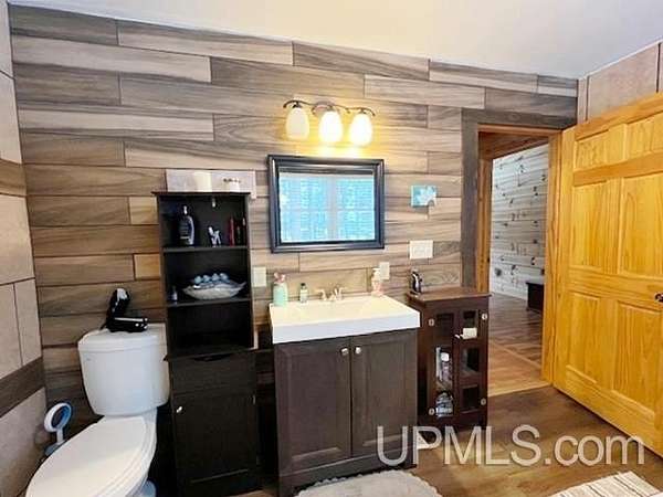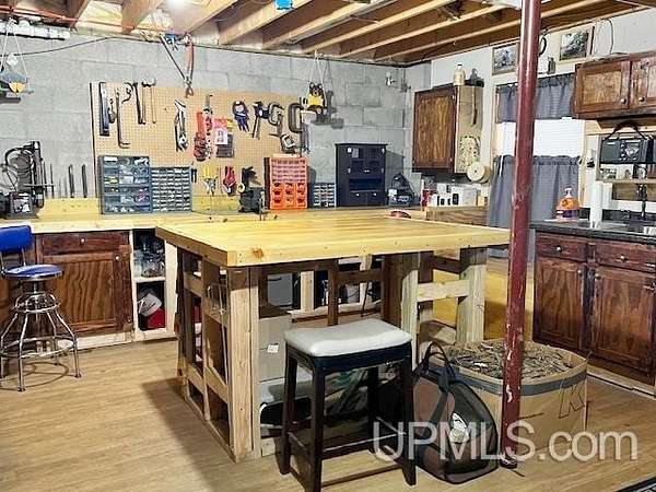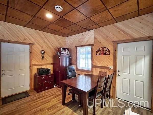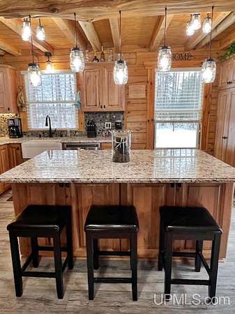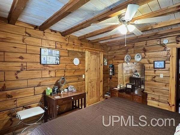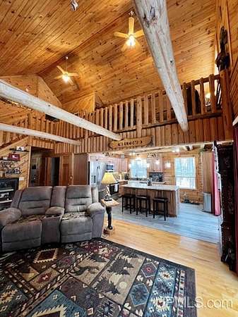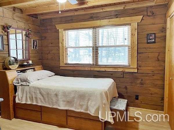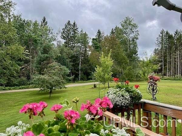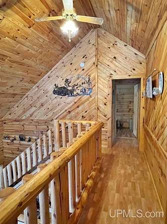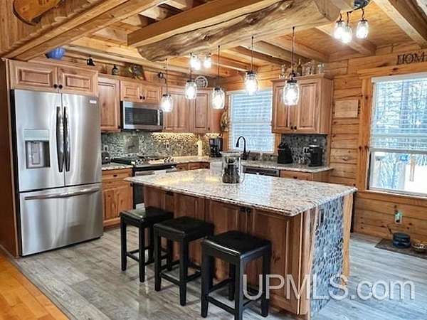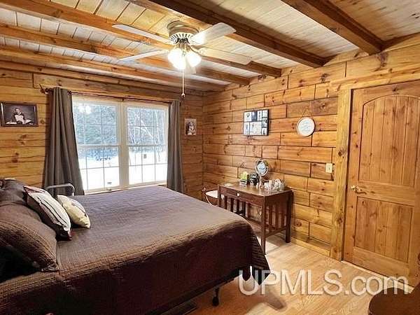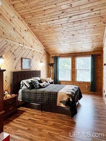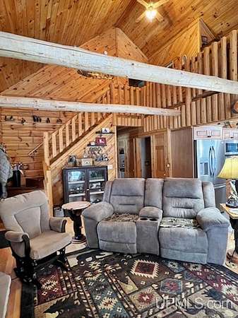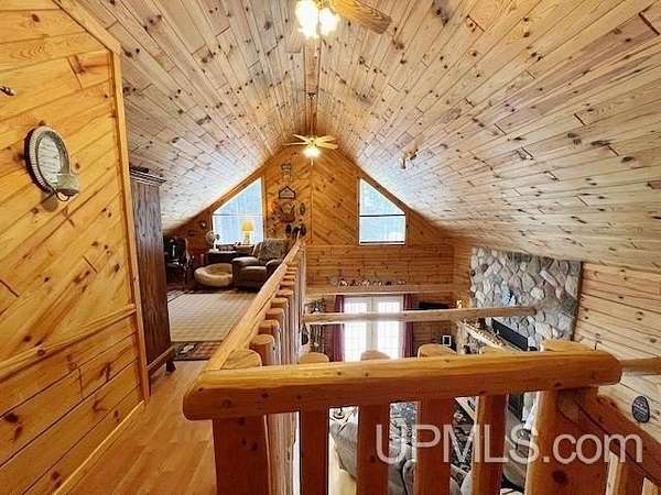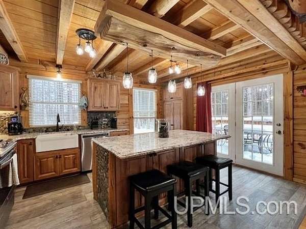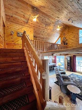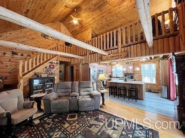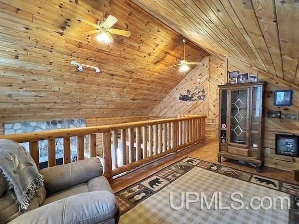 Updated 3BR, 2 BA log home offers the peacefulness of nature you've been looking for--whether as a primary residence or vacation retreat. The open-concept main level features gorgeous woodgrain throughout and an upgraded kitchen with new hickory cabinets, granite countertops, and updated lighting. The living room is highlighted by a soaring ceiling with cross beams and a beautiful fieldstone wood-burning fireplace. You'll also find a cozy family room and convenient first-floor laundry. The second level includes a charming reading nook overlooking the great room below, along with a spacious primary bedroom suite complete with jetted tub and walk-in shower. The full walk-out basement offers additional storage space and a workshop area. Heating is provided by GFA along with a new energy-efficient wood furnace to help keep utility costs low. Enjoy the outdoors from the expansive deck overlooking the wooded 1.5 acres. Property features a fenced-in kennel and garden area, an attached 1-car garage, and two lean-tos for extra covered parking. Located on a quiet dead-end town road with year-round access, direct ATV trail access, and only 1 mile from the Nicolet National Forest, this log home is perfectly positioned for adventure in this Northwoods paradise.