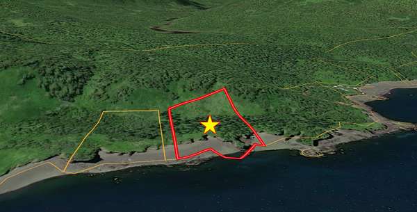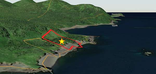 This 5-acre parcel gently slopes down to your own private beach along the clear, cold waters of Uyak Bay. The gradual grade makes it ideal for building, offering elevated views of the bay while providing easy access to the shoreline. Step from forest to beach in moments—perfect for launching a kayak, casting a line, or simply soaking in the raw coastal beauty of Kodiak, Alaska.
