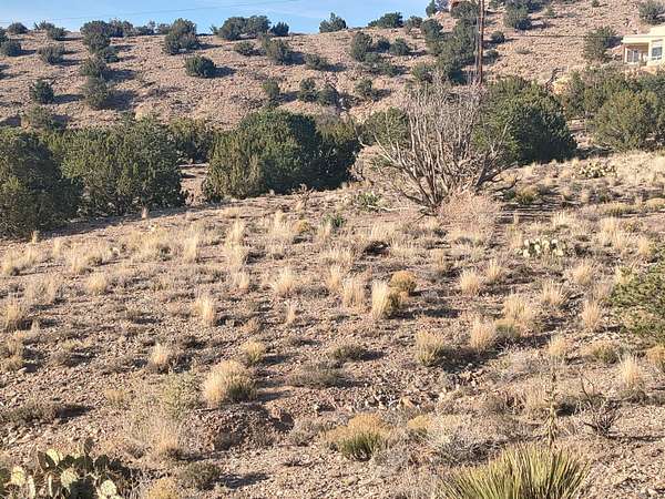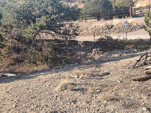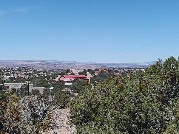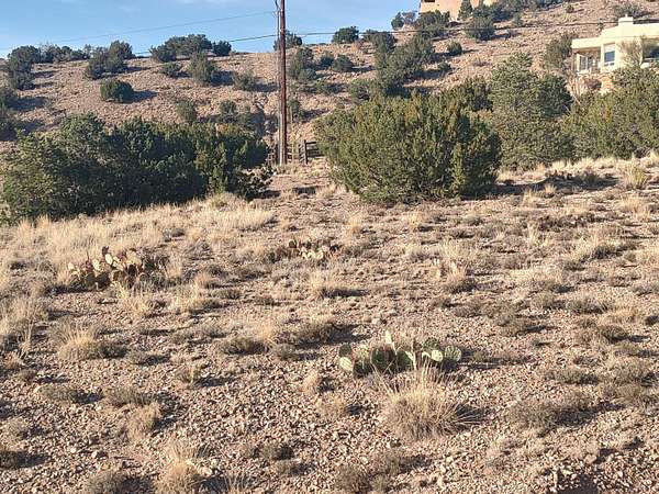 Take exit 242 from I-25 and head east toward Placitas. Continue approx. 6.5 miles to Camino de las Huertas (past the Post Office and School). Turn left on Camino de las Huertas and continue approx 1.25 miles. Turn right on Camino de las Brisas. Follow the road up the hill, turn left on Las Brisas Loop. Lot is on the left across the street from home at 15 Las Brisas Loop. Pull off on the left and access lot through gate. Las Brisas Loop is VERY RUGGED going further. Go back the way you came.