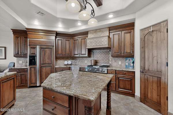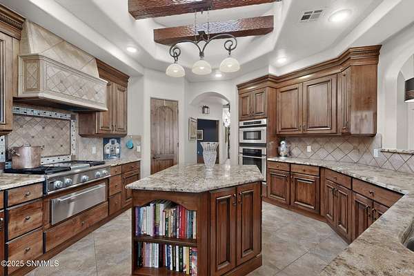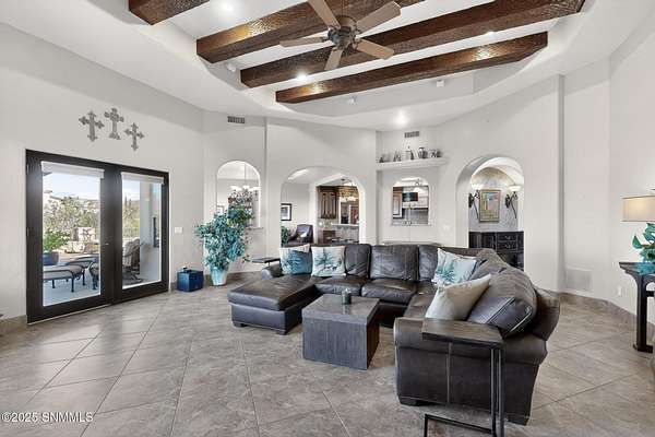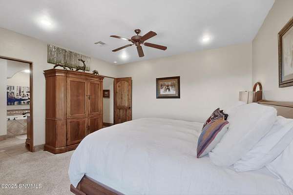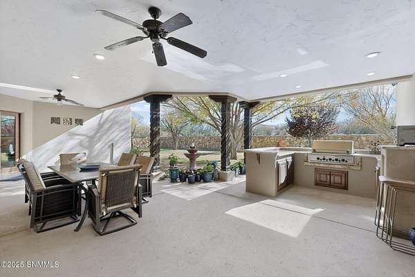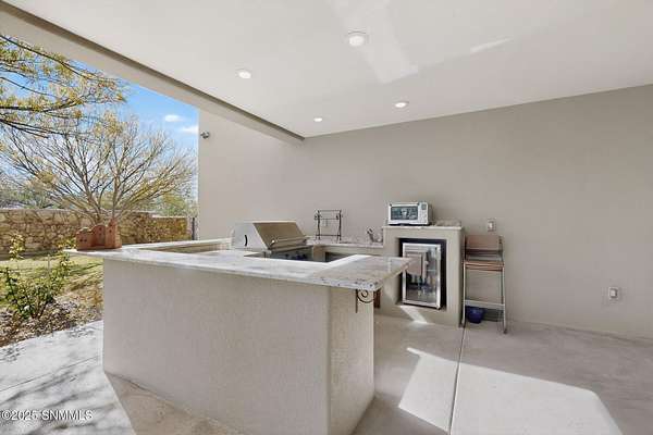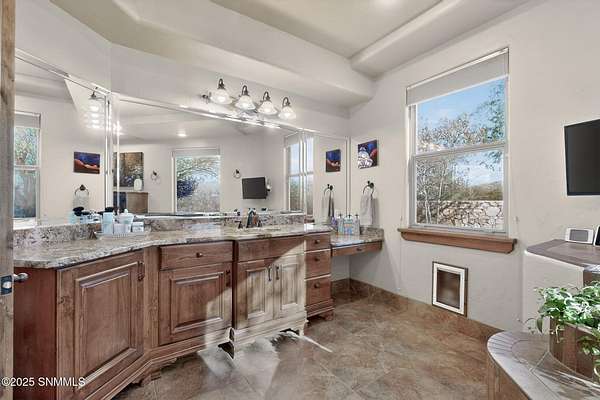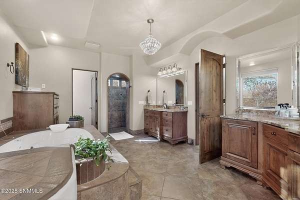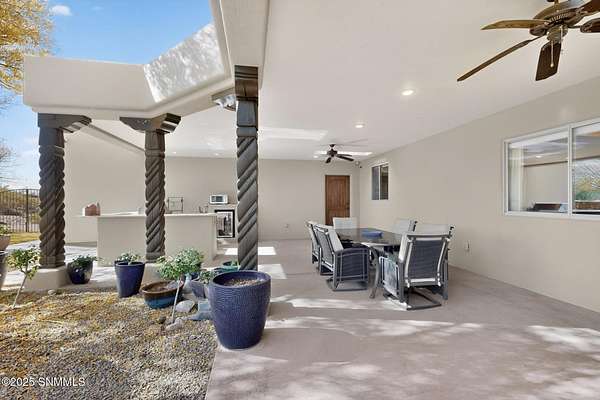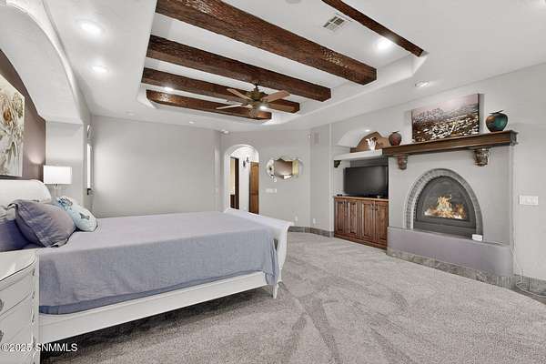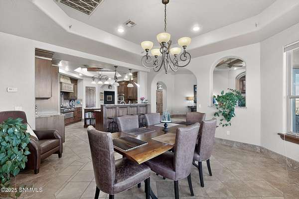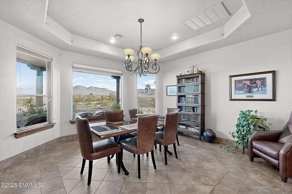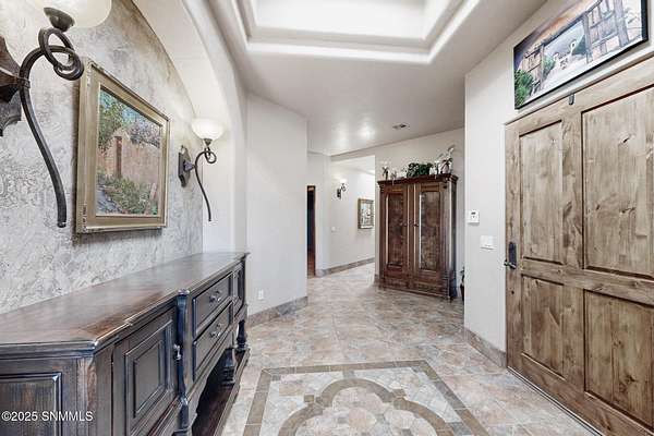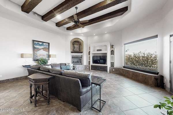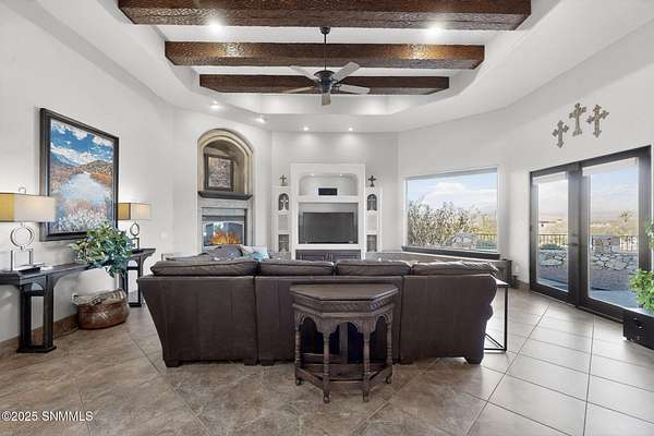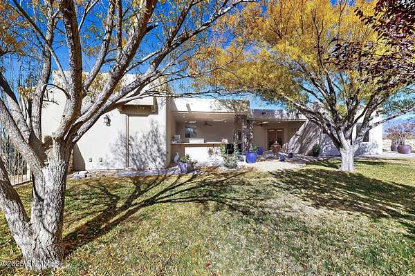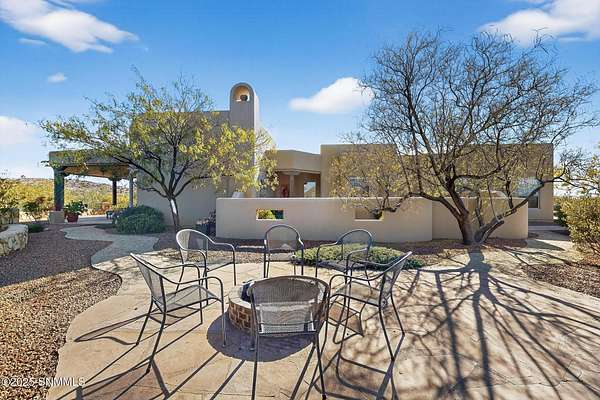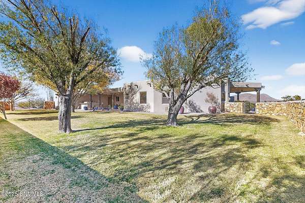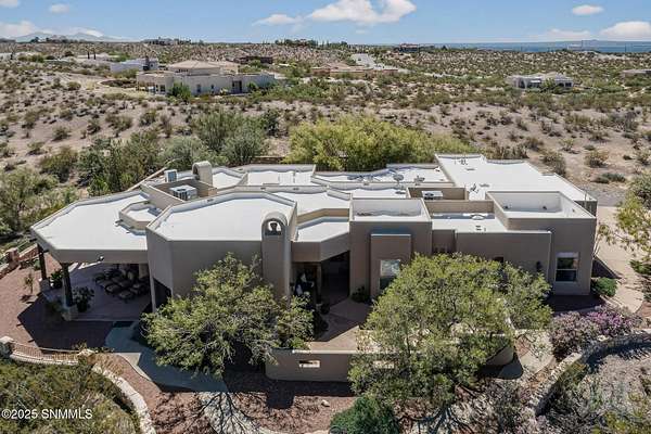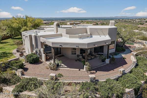 Gorgeous views!! Nestled within the prestigious gated enclave of La Tierra Escondida, this exceptional custom residence epitomizes refined Southwest luxury. Set on an expansive 1.91-acre, the 3,581 sq. ft. masterpiece is perfectly positioned to capture sweeping Organ Mountain panoramas and sparkling city-light views. Thoughtfully designed with 4 bedrooms and 2.5 baths, the home offers a sophisticated, flexible layout in which the fourth bedroom may serve as an elegant office or library. The gourmet kitchen is a culinary showpiece, complete with a center island, premium appliances, and abundant prep and storage space--ideal for everyday living and elevated entertaining. The grand living room showcases exquisite craftsmanship, featuring a stately fireplace, functional bancos, all framed within a spacious open-concept design. The serene primary suite offers its own fireplace, and a spa-inspired bath. Completing this property is an oversized three-car garage accompanied by a dedicated attached storage room.