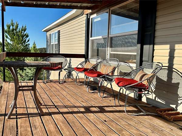 Rancho El Patron encompasses 1,316 acres of varied northern New Mexico terrain, combining elevation, expansive views, and a strong sense of scale. From elevated vantage points, the ranch enjoys spectacular views of the Sangre de Cristo Mountains, Tecolote Creek, Hermit's Peak, Starvation Peak, and portions of the historic Old Santa Fe Trail. Despite its peaceful and quiet setting, the ranch benefits from paved access on NM-84 and is located only 10 miles from Interstate 25. The ranch is just 20 minutes from historic Las Vegas, New Mexico, and one hour from the culture and fine dining in Santa Fe. The ranch is anchored by a series of elevated rocky bluffs, including roughly one mile of rimrock rising more than 300 feet above the surrounding landscape. The broader topography includes rolling hills, mesas, pinon and juniper woodland, arroyos, and prominent rock outcroppings that create visual depth and natural separation across the property. Elevations range from approximately 5,800 to 6,300 feet, with higher ground providing amazingly broad vistas with a variety of potential building sites well positioned for views and privacy. Historically part of an early Spanish land grant, Rancho el Patron has been held as a private family ranch for many years. The property includes approximately one mile of frontage along U.S. Highway 84 and benefits from existing infrastructure that supports long-term flexibility. Approximately two miles of water pipelines and underground electric extend along interior roads, serving seven potential building sites throughout the ranch. The ranch is divided into three legal parcels, providing meaningful options for future ownership. The configuration and infrastructure allow for development possibilities and would enhance the value of a conservation easement, depending on an owner's long-term objectives. Improvements include a furnished 2016 Clayton manufactured home with three bedrooms and two bathrooms, offering approximately 1,475 square feet of living space. The residence has central heat and a wood-burning stove. There is also window-unit heating and cooling. Three covered porches and a two-car carport provide additional utility. The home is well suited as a comfortable base while developing the property and/or constructing a primary ranch residence. Water resources include two wells, five dirt tanks, three drinkers, and an extensive underground water distribution system. Cattle handling facilities include pens and a loading chute. The property also includes an additional 4-car carport/workshop and a single carport. Located within New Mexico Game Management Unit 43, the ranch supports wildlife including elk, mule deer, black bear, turkey, and mountain lion. The ranch qualifies for unlimited landowner elk tags and over-the counter landowner deer hunting. Rancho El Patron offers a balanced combination of acreage, privacy, infrastructure, and accessibility-appropriate for continued ranch use, a private holding, or a long-term land strategy aligned with development or conservation goals.