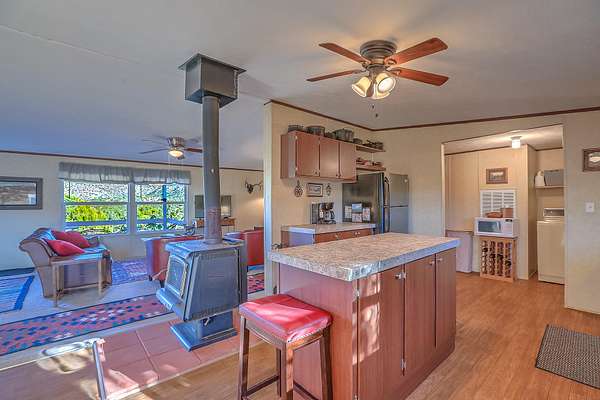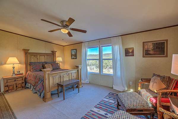Improvements include a furnished three-bedroom, two-bath manufactured home, plus a four-car carport/workshop and a single carport. Water resources include two wells, five dirt tanks, three drinkers, and an extensive underground distribution system. Cattle facilities include pens and a loading chute. Located in New Mexico Game Management Unit 43, the ranch supports elk, mule deer, black bear, turkey, and mountain lion, and qualifies for unlimited landowner elk tags and over-the-counter landowner deer hunting.