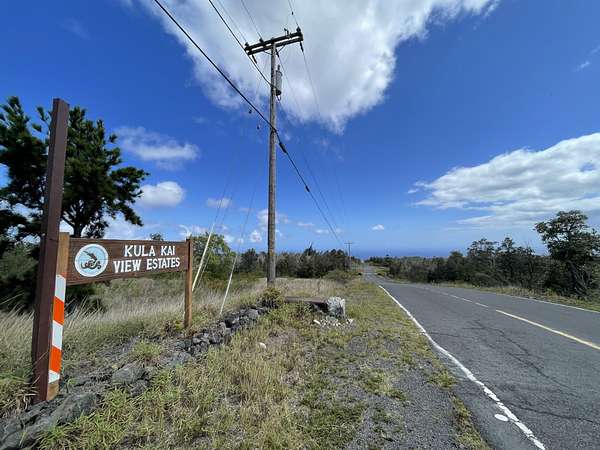 Build your Dream Home on this wide 3 Acre Lot in this Private Gated Community of Kula Kai View Estates in Ka'u. Located at the end of the road on the hill, you will typically enjoy sunshine in mornings, tropical breezes all year round, and views of the ocean and mountainside. Measured at 309' x 422.92' you will have lots of privacy and space to build your home. Improved with two driveways, a large graded house pad area, extra space for a pool, storage, and even more undeveloped land to the east, to clear and build more of your dreams come true! Located just minutes to Shopping, Gas, and Restaurants, Ocean View has a wonderful Saturday Open Market near Malama Market, and is just 20 minutes away from the quaint town of Naalehu and more awesome restaurants, bake shops, hardware stores and beaches. $155/YEAR ANNUAL DUES - ROAD MAINTENANCE KULA KAI COMMUNITY INFO & DOCS: