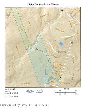 Est $2,323/moFour contiguous parcels of wooded land totaling over 42 acres with a rushing stream cutting through the middle. Tax map shows three access points. Real nice mix of hardwood and pine trees with some Mt. Laurel mixed in. Tons of old wood roads, and walking trails. Great location just off of the main drag and maybe three miles from the amazing park called Minnewaska. Some real nice swimming holes on that creek, one that looks to be 10' or so deep! Tax map shows 50' frontage on Rt 44/55 and on Rock Haven Road, as well as frontage on Laurel Lane.