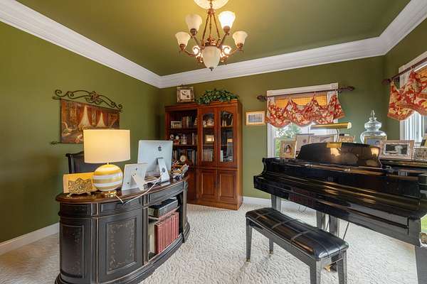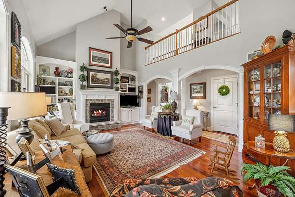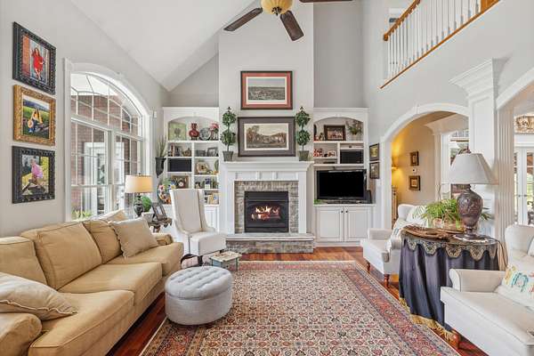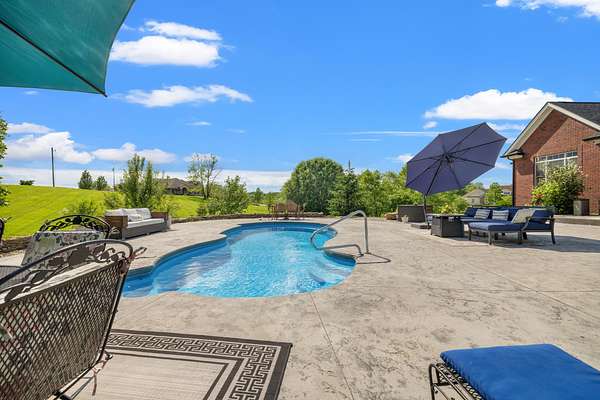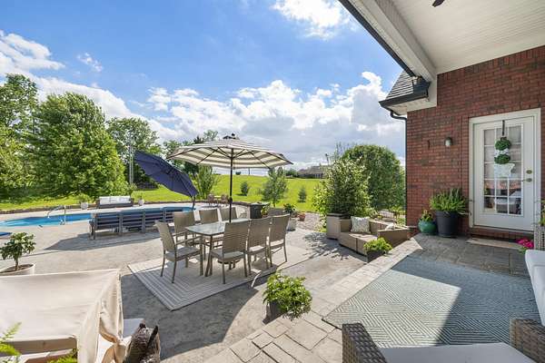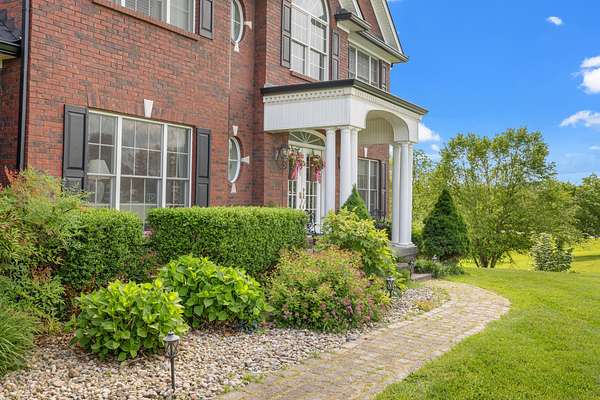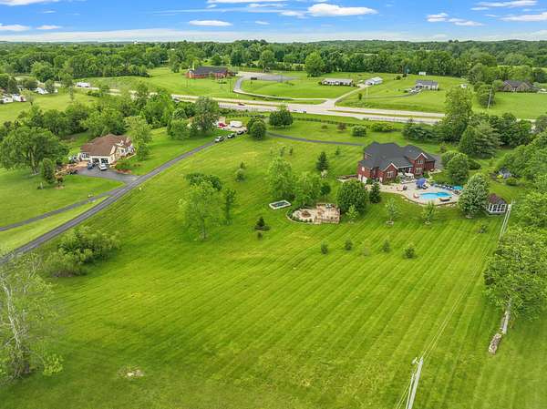 Elegant Estate with Luxurious Amenities on 3.41 Acres. This stunning home is the epitome of elegance, offering an array of upscale features and thoughtful design throughout. Step into the welcoming two-story foyer, which flows seamlessly into a warm and inviting great room complete with a gas log fireplace framed by custom built-in bookcases. At the heart of the home is the kitchen"a true family hub"featuring a spacious island with bar seating, smooth top range with built-in bookshelves, an oven with warming drawer, built-in desk, and ample windows that flood the space with natural light. Host memorable gatherings in the formal dining room, adorned with wainscoting and beautiful hardwood floors. Across the hall, a versatile formal sitting room offers the perfect space for an office or library. The main-level master suite is a private retreat, boasting a luxurious en-suite bathroom with a relaxing Jacuzzi tub, a large walk-in closet, and elegant finishes throughout. Upstairs, you'll find four additional bedrooms, and two full bathrooms"perfect for family and guests. -- See supplemental remarks. The fully finished basement is designed for fun and entertainment, featuring a wet bar, gas log fireplace, game area, full bath, and ample storage space. Outside, enjoy a beautifully designed resort style setting! The expansive concrete patio surrounds a sparkling in-ground pool, ideal for entertaining or simply relaxing in a tranquil setting all set on a picturesque 3.41-acre lot. All of this is only minutes from the Bluegrass Parkway and is located right of US 127.
