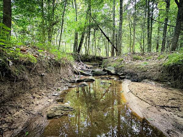 For those who cherish the outdoors, the property's 640+ feet of picturesque frontage along the Meherrin River is a standout feature. Shaded by mature hardwoods and lined with high riverbanks, this section of the property provides the ideal setting for freshwater fishing, peaceful relaxation, or even a rustic riverside campsite. In addition to the river, a year-round, spring-fed creek meanders for over 4,000 feet through the hardwood bottoms in the middle of the property, enhancing the land's biodiversity and beauty. A second creek, with an additional 2,000+ feet of frontage, flows along the rear boundary of the property and into Big Branch Creek before reaching the Meherrin River.
