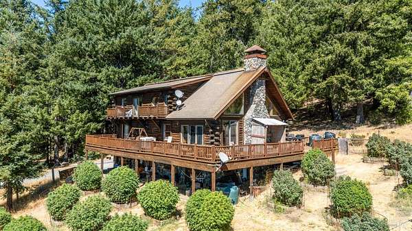 Est $5,464/moRare opportunity to own a one of a kind property with limitless potential. Two beautiful spacious homes, a smaller cabin on 210 acres. The main home is a custom 3 bedroom 2 bath with a large attached garage/wokshop. Second home is a 2 bedroom 2 bath log home with a large basement adding to the living space. Mix of flat usable land and forested hillsides providing hiking, hunting and nature trails. Perfect for retreats or full time multi- family living. The property holds an active cannabis license. A turn key opportunity for a self-sufficient lifestyle with income in place.
