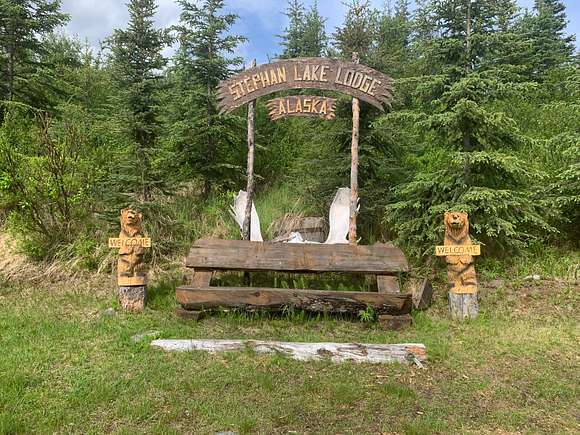 Located on the banks of Stephan Lake, Stephan Lake Lodge is compromised of 5 acres with a mixed terrain. Stephan Lake is a 316 +/- acre lake with just over 6.5 miles of shoreline. Stephan Lake is nestled amidst dramatic, rugged terrain typical of Alaska's wilderness. It is framed by steep, towering mountain ranges that rise sharply from the lake's shores. The lower elevations around the lake are blanketed in dense forests, dominated by coniferous trees like spruce, fir, and pine. As you ascend into the mountains, the landscape transitions to rocky. The region's history of glaciation has left its mark on the landscape, with visible glacial features such as moraines and valleys shaped by ancient ice flows. Given its remote location, Stephan Lake is limited, usually requiring travel by hiking or small aircraft, adding to the sense of isolation and pristine beauty of the area.