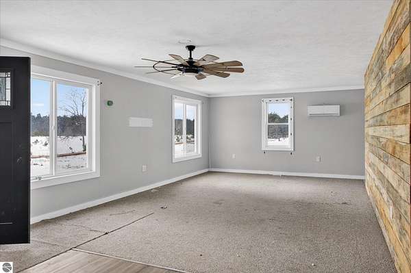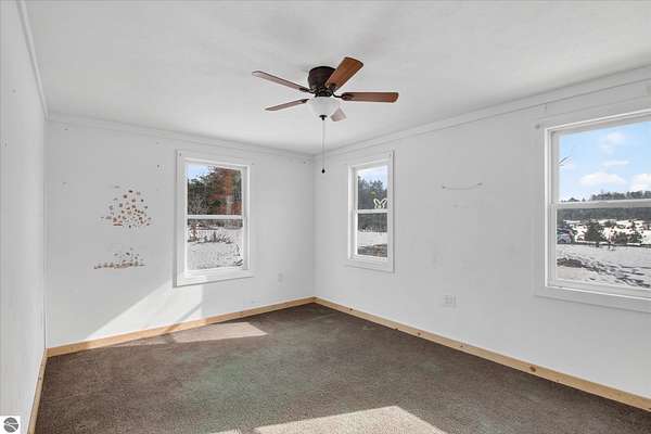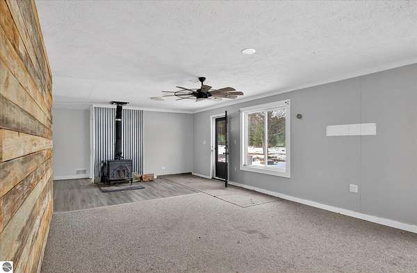 Built in 2020, this off-grid home sits on 10 private acres with sweeping open views and complete seclusion at the end of a private drive -- not a neighbor in sight. The main floor is fully livable and nearing completion, offering an open layout, main floor laundry, air conditioning, and appliance hookups -- combining self-sufficient living with modern comfort. The second story is started and ready for you to finish to your taste, creating instant equity potential. The kitchen and bath feature premium Shaw lifetime laminate flooring, and the professionally installed metal roof by Yoder's Supply adds long-term durability. If you're searching for privacy, acreage, and off-grid freedom without sacrificing comfort, this one-of-a-kind country retreat is ready for your vision.