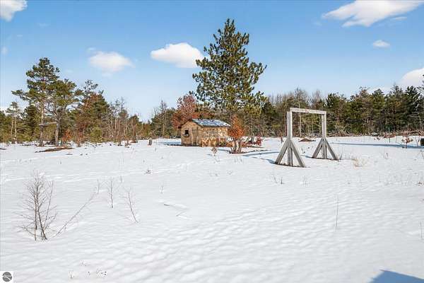 Exit 131 going West on 14 Mile Rd. Turn left at the lumberyard onto Pioneer Ave. Continue through the lumberyard all the way to the end of the road. It roughly dead-ends into a two track. Take the two track to home on left. There is a gate to open and clo