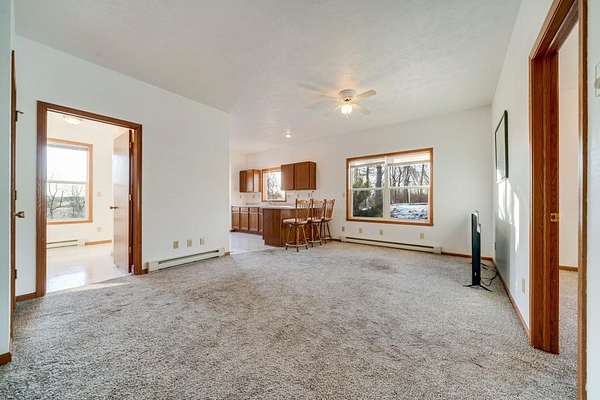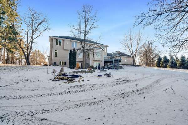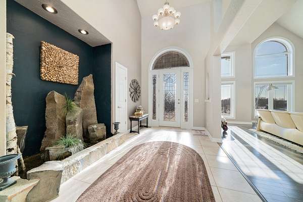 Discover a truly one of a kind custom built estate offering over 5,000 finished square feet nestled on 80 breathtaking acres. Proudly owned by the original owner, this exceptional property blends luxury, space, and natural beauty in a setting rarely found. A grand entrance welcomes you into the stunning living room featuring soaring ceilings and a dramatic indoor waterfall, creating an unforgettable first impression. The home flows effortlessly into the gourmet kitchen complete with granite countertops, stainless steel appliances, and a warming drawer, perfect for entertaining. An inviting eat in area with expansive windows showcases gorgeous panoramic country views. The main floor also includes a formal dining room, family room, laundry room, and two bedrooms, offering both comfort and functionality. Upstairs, retreat to the grand primary suite featuring two large walk in closets and an oversized spa like bathroom with soaking tub, tile shower, and private sauna. A versatile bonus space provides the perfect option for a home office, sitting area, or additional living space. The finished lower level offers two bonus rooms that could easily serve as additional bedrooms, a full bathroom, abundant storage, and more flexible living space. An attached, heated 3 car garage adds convenience, while the oversized detached 6 car garage offers incredible potential, featuring a one bedroom apartment with living room, kitchen, full bath, and laundry. Ideal for multi-generational living, guests, or an in home business. The land itself is equally impressive with a beautiful mix of tillable acreage providing income, wooded areas for recreation and hunting, and a creek winding through the property. Zoned Agricultural and serviced by natural gas. This remarkable property is a true treasure, offering privacy, versatility, and endless opportunity. Move quickly, opportunities like this are rare.