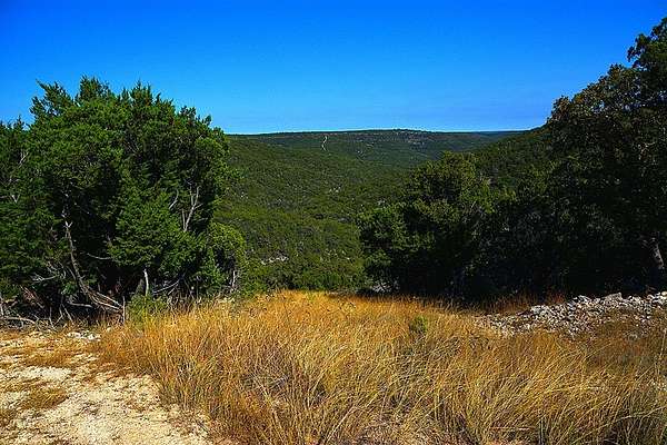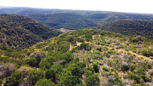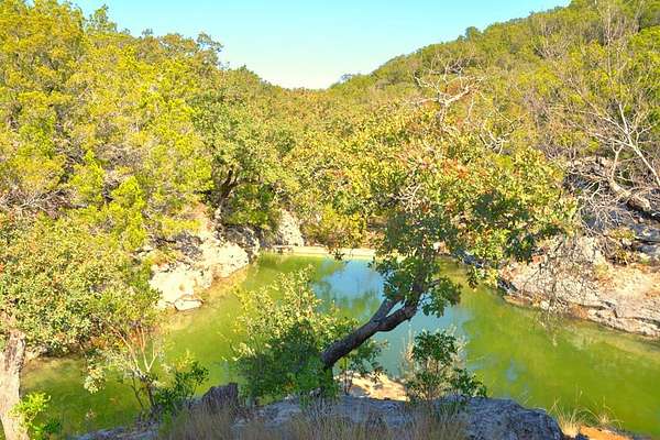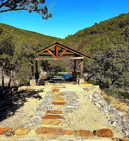 A Hunters Dream With Live Water! A rare recreational ranch featuring a natural, spring-fed swimming pool tucked between rolling hills in Leakey. The stunning pool holds more than 350,000 gallons and features a natural rock bottom surrounded by original stone formations. Overlooking the water is a party pavilion, extensive trail system leading to multiple potential building sites, hunting locations, and shooting areas. Peaceful and secluded; includes 39 ft. newer RV, an outdoor shower, 1,600-gallon water storage tank, solar panels, 3 feeders, 2 blinds, an outhouse, and more. Additional improvements include a 3,000 ft metal building on slab already plumbed inside with a newer conventional septic. The ranch hosts a variety of Texas Hill Country wildlife, including whitetail deer, red stag, occasional elk, turkey, bobwhite quail, aoudad, hogs, and other native small game.